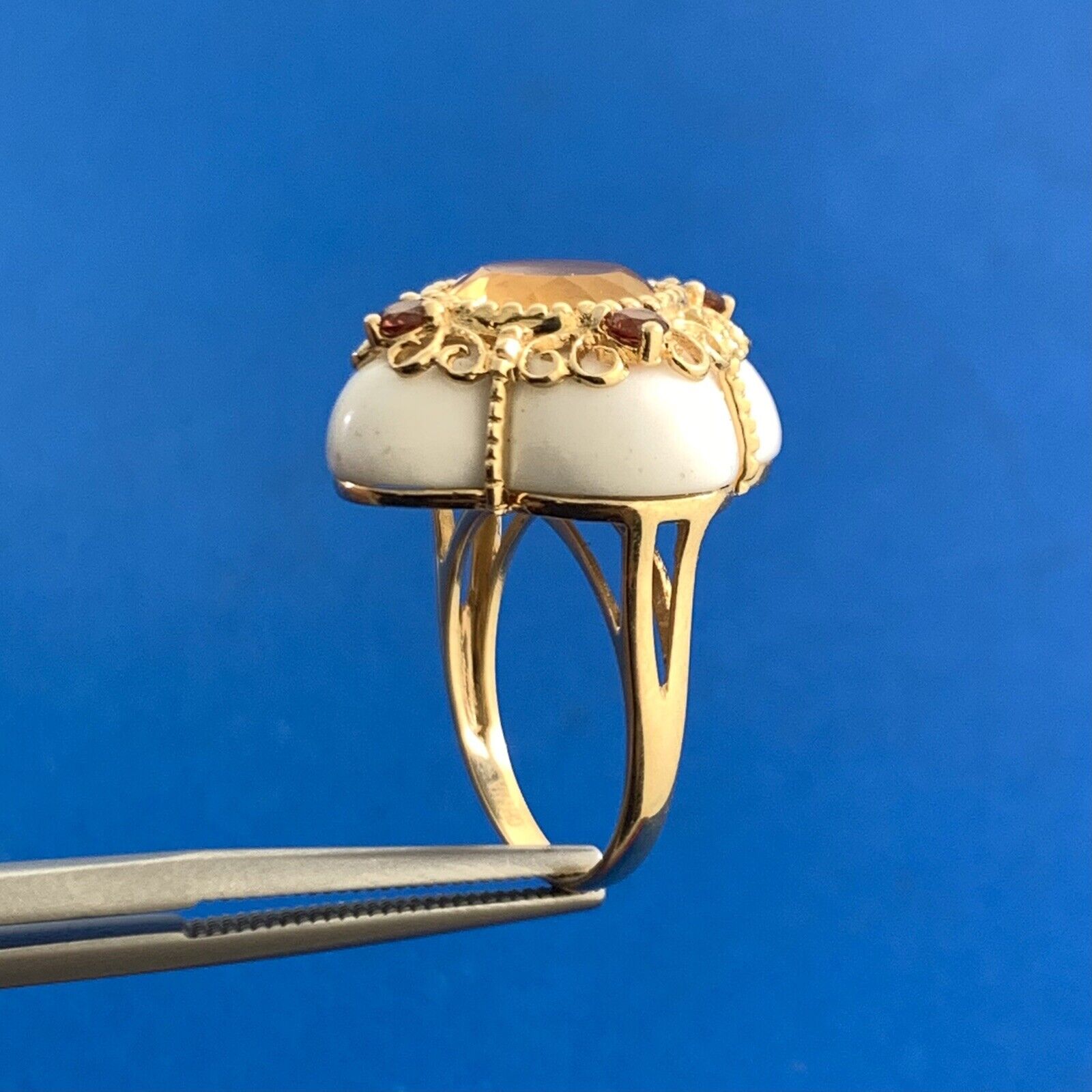 Designer 14K Yellow Gold Citrine Orange Tourmaline White Agate Statement Ring