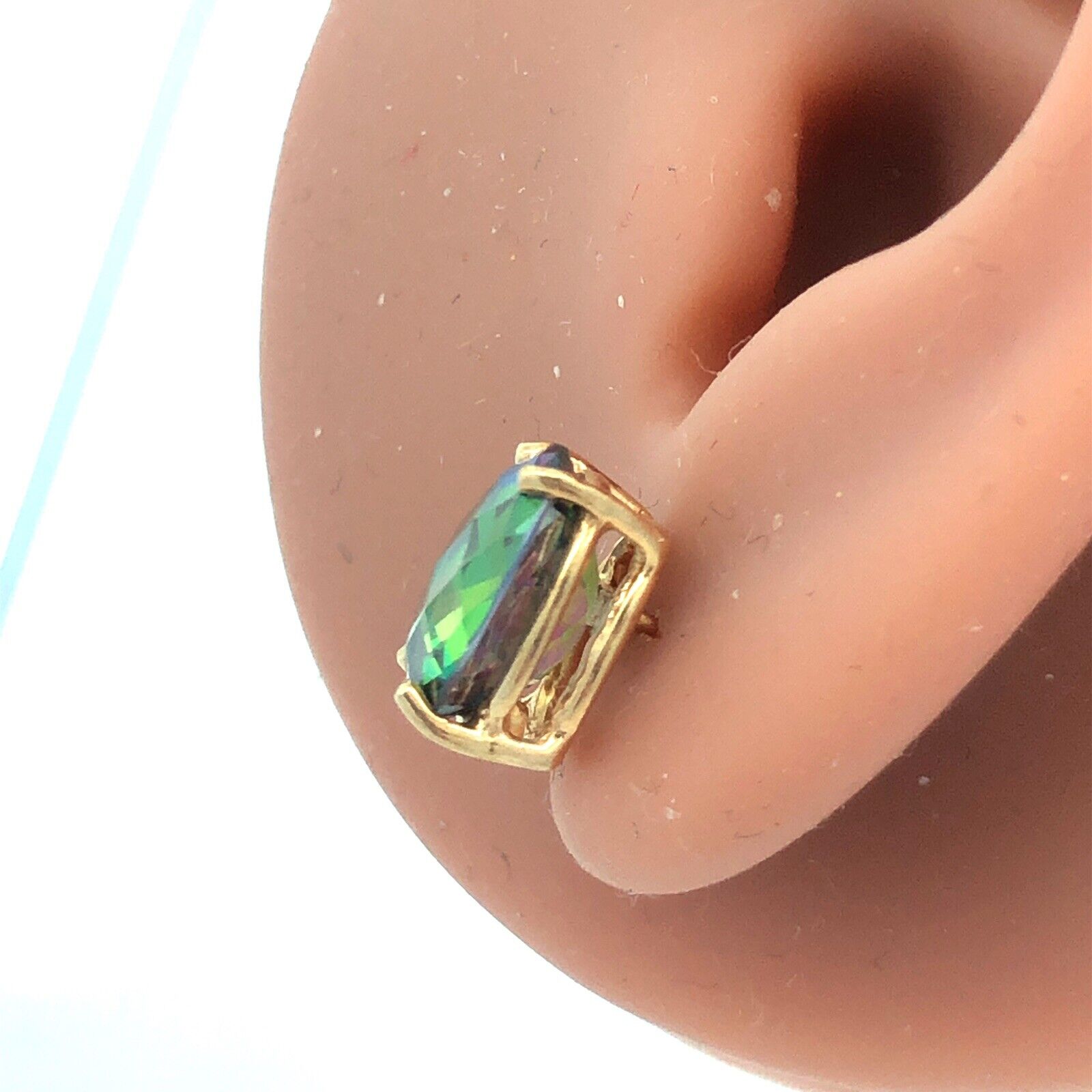- Designer 14K Yellow Gold Cushion Cut Oval Mystic Topaz Statement Stud Earrings