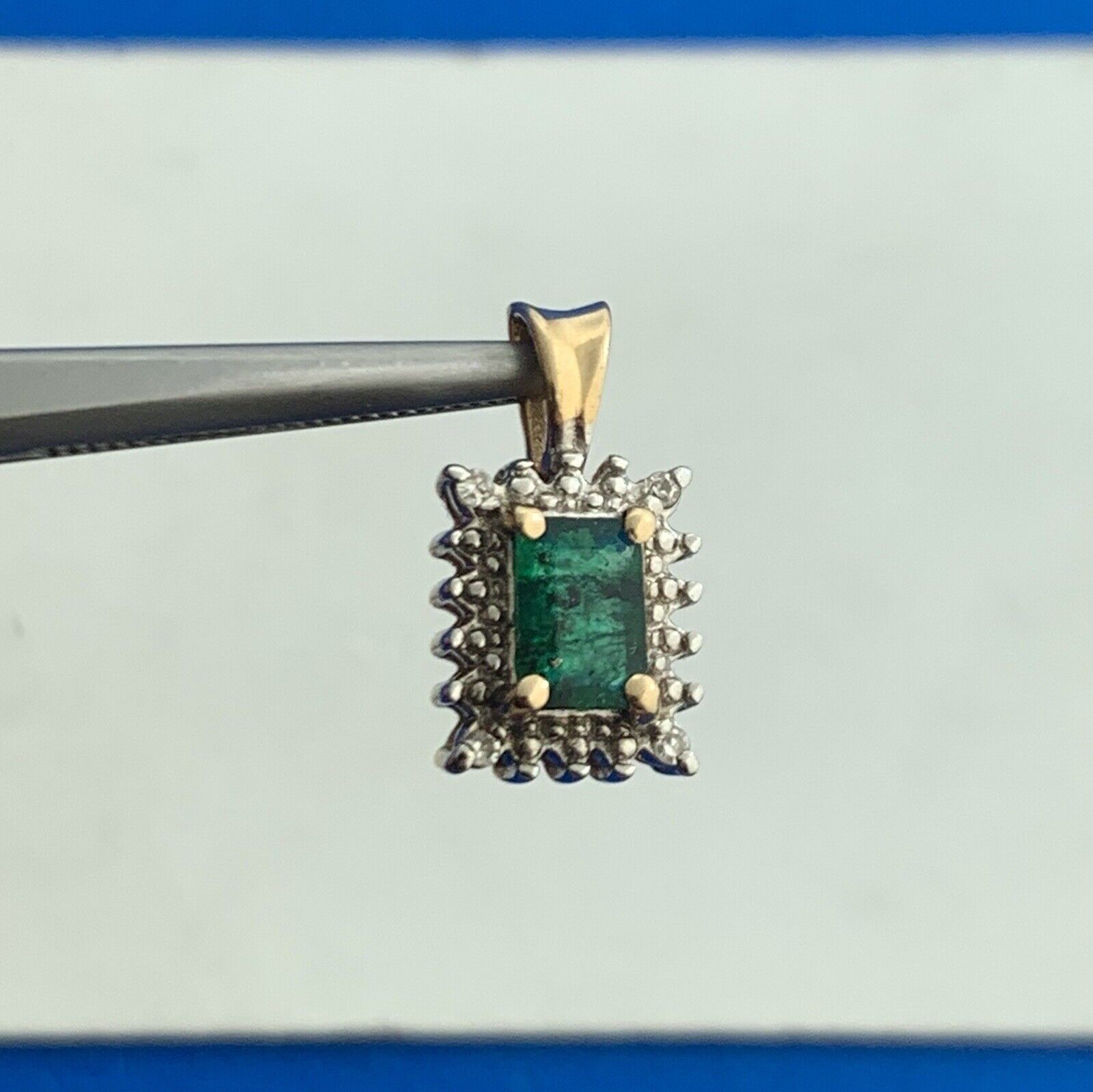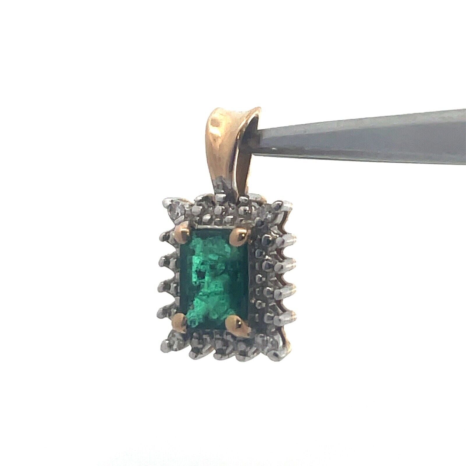 - Designer 14K Yellow Gold Emerald Cut Emerald Diamond Accent Pendant