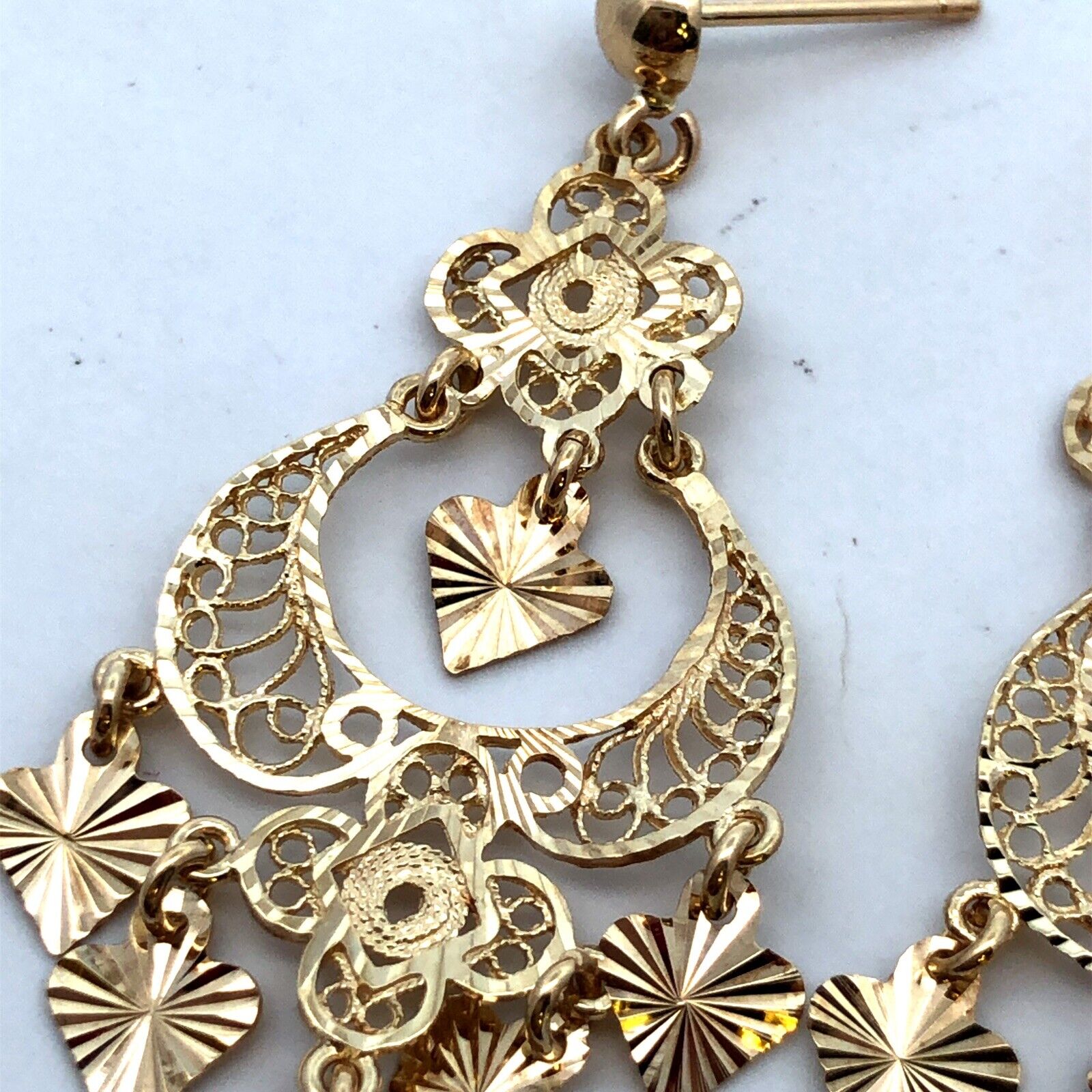 Designer 14K Yellow Gold Filigree Textured Statement Chandelier Dangle Earrings