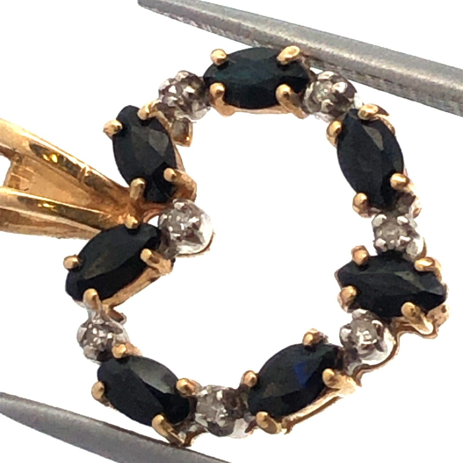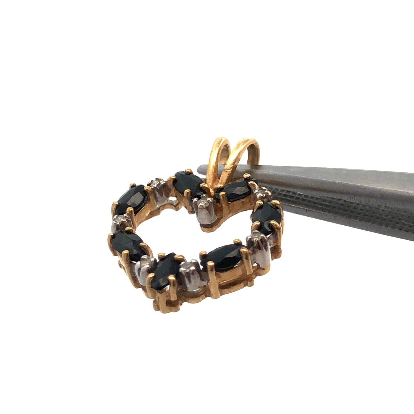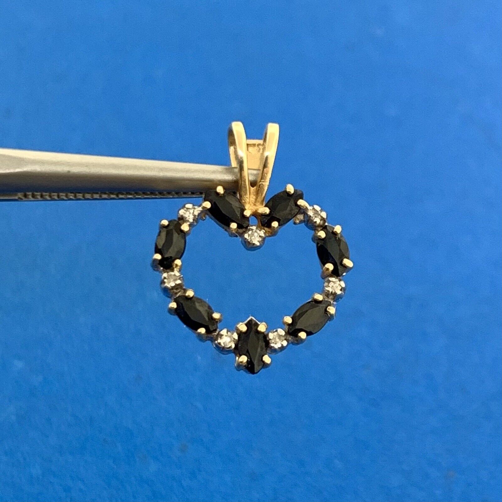 - Designer 14K Yellow Gold Marquise Sapphire Diamond Accented Heart Pendant