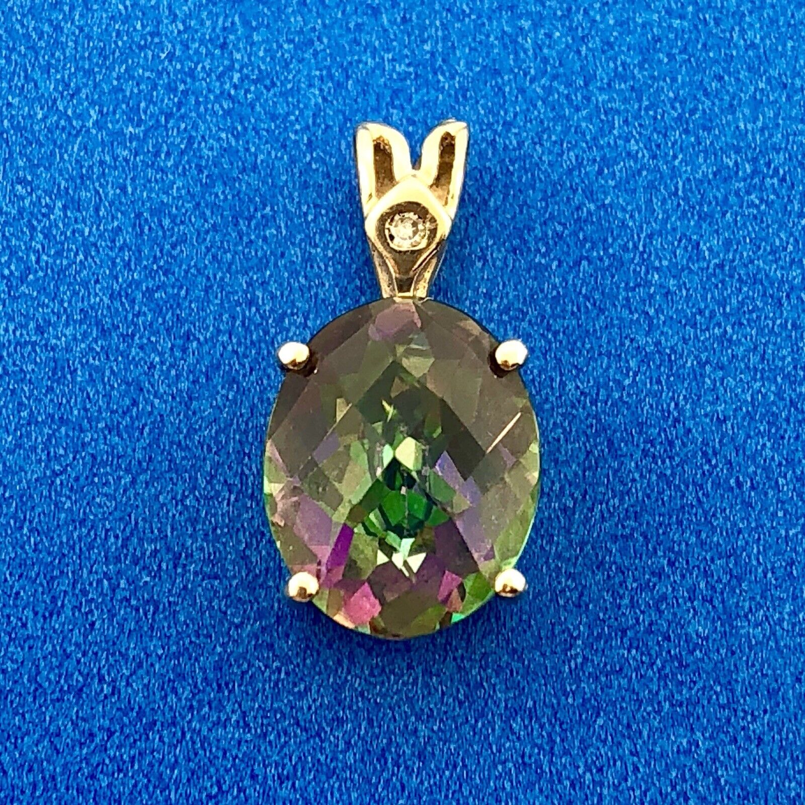 - Designer 14k Yellow Gold Mystic Topaz Diamond Accent Pendant
