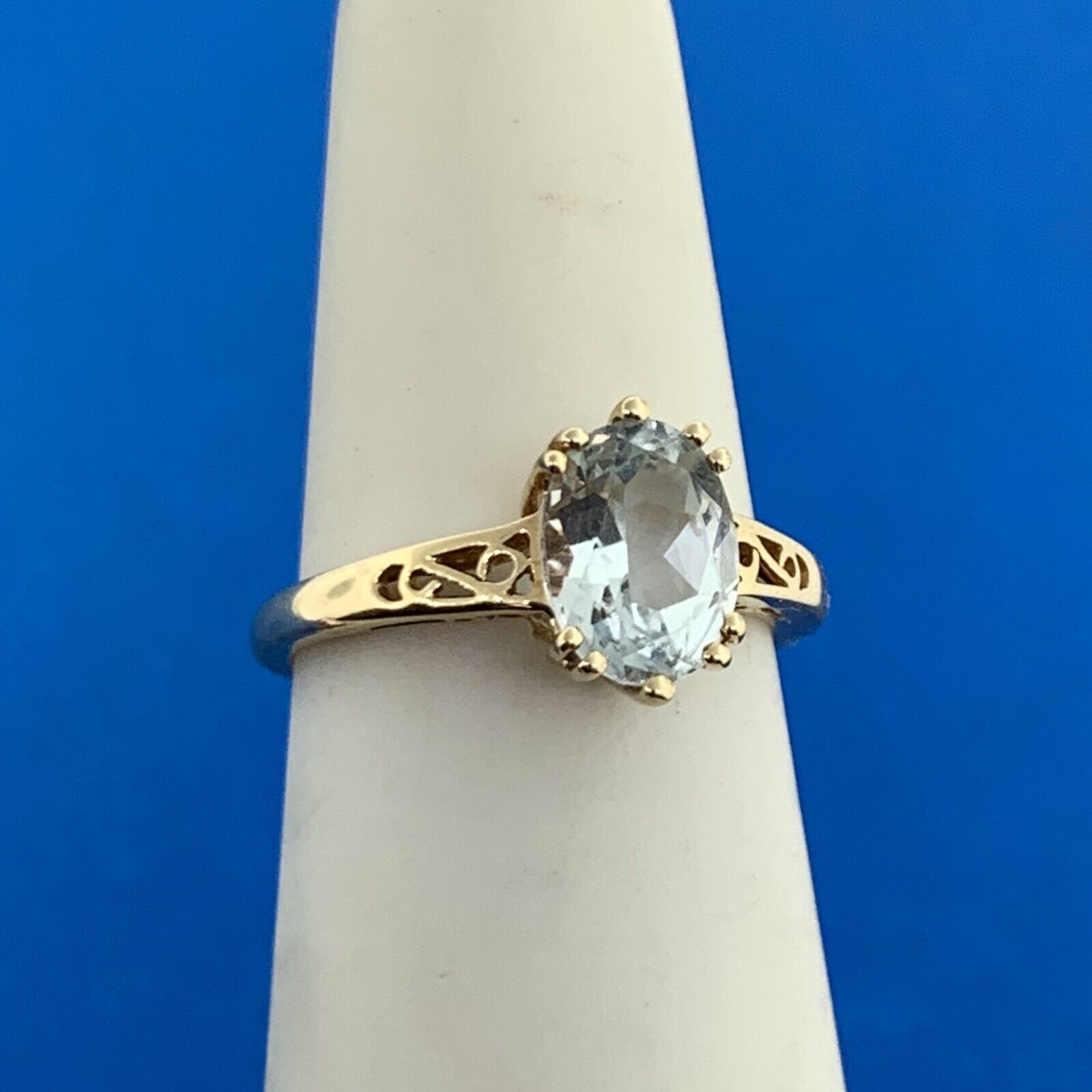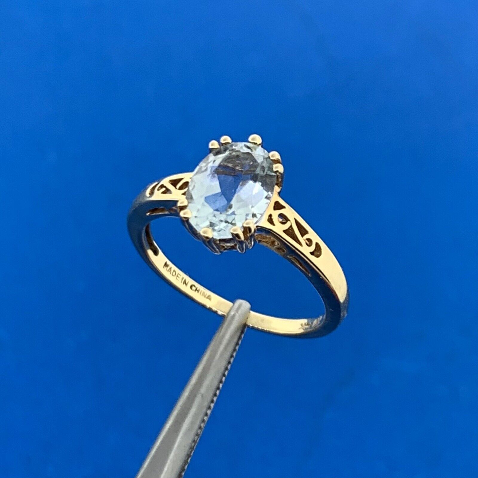 - Designer 14K Yellow Gold Oval Aquamarine Solitaire Ring