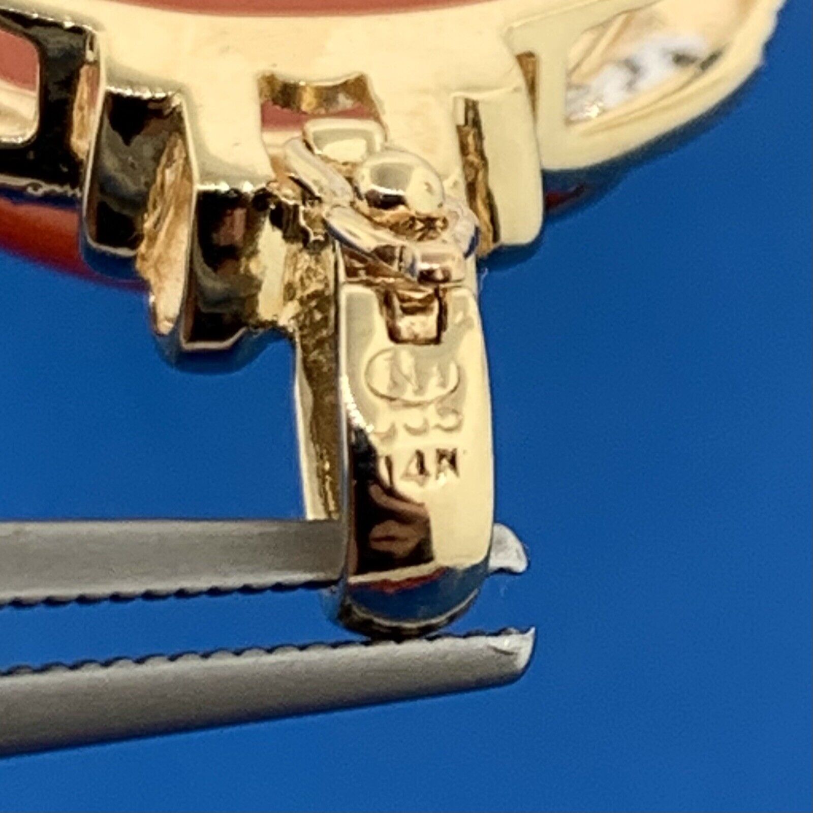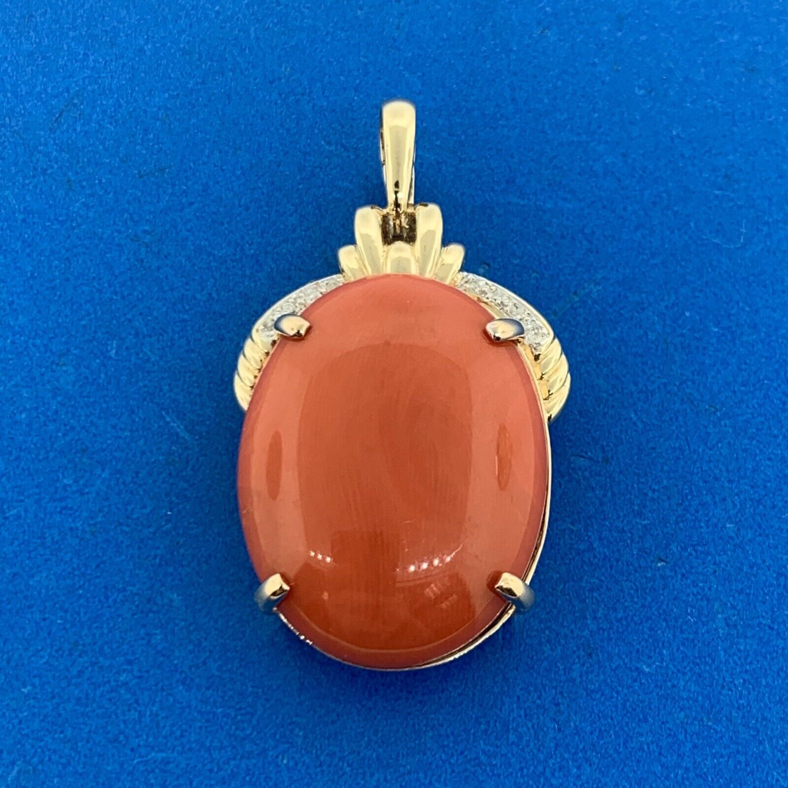 - Designer 14K Yellow Gold Oval Coral Cabochon Diamond Accented Enhancer Pendant