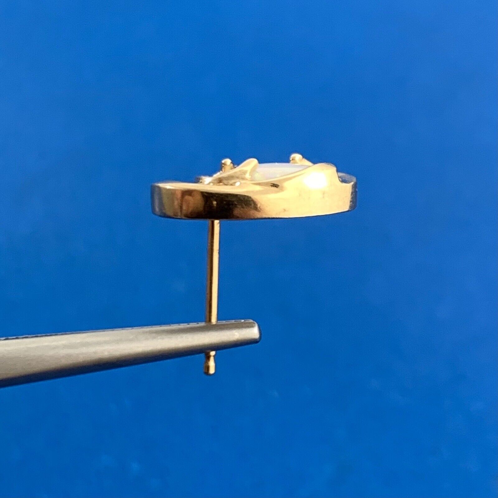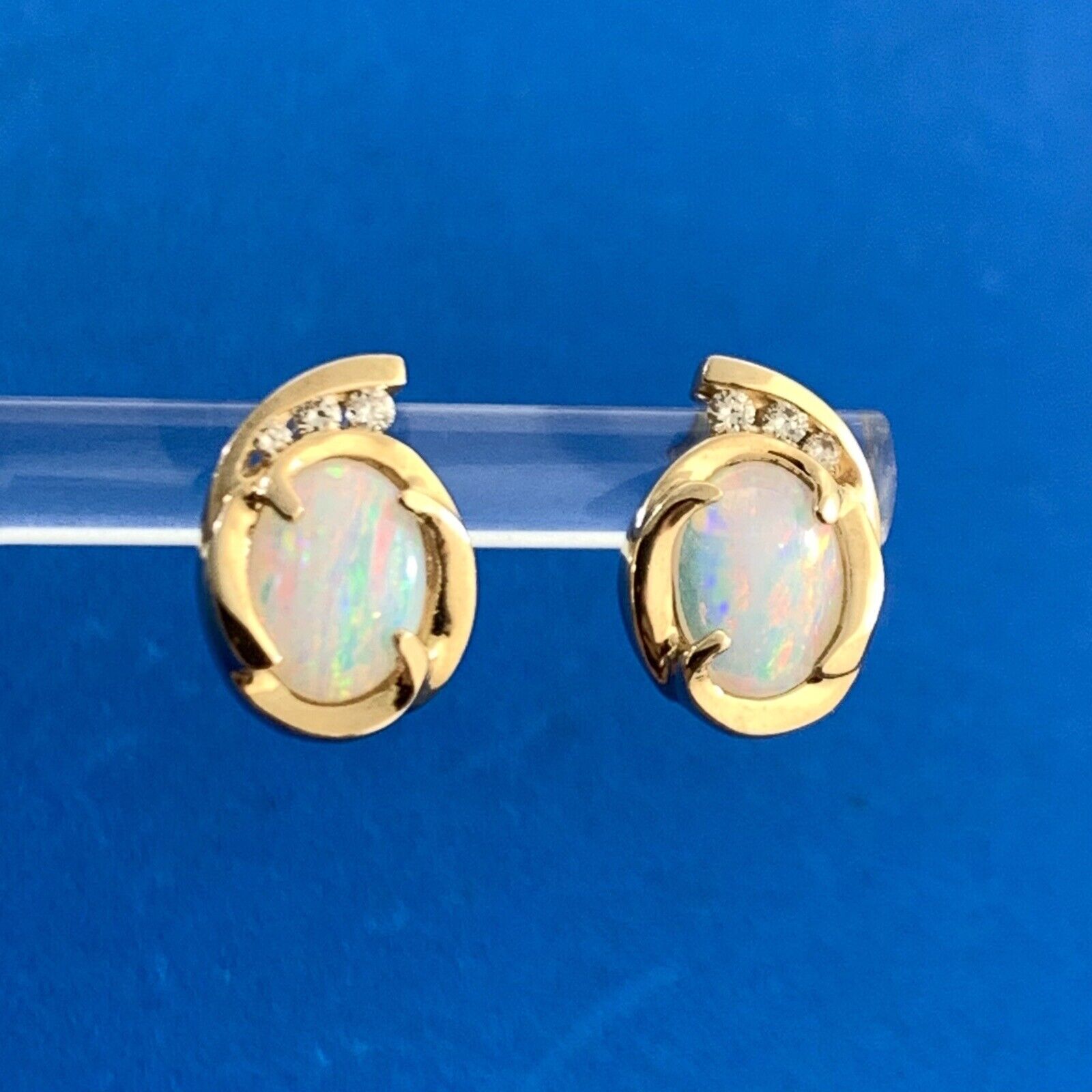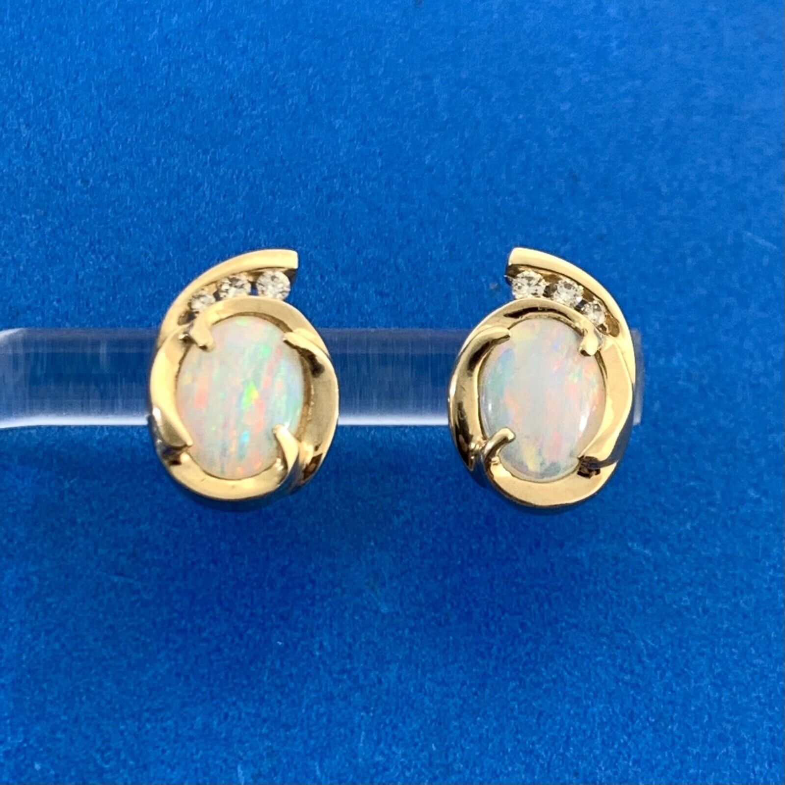 - Designer 14K Yellow Gold Oval Opal Diamond Accented Stud Earrings