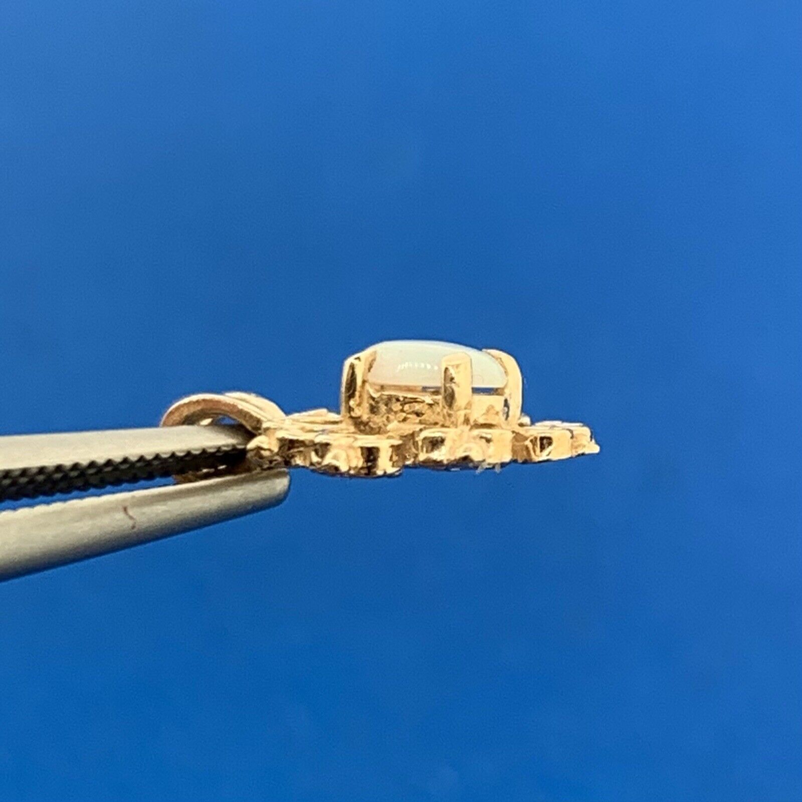 - Oval Opal measures approximately 5.0 mm x 3.0 mm