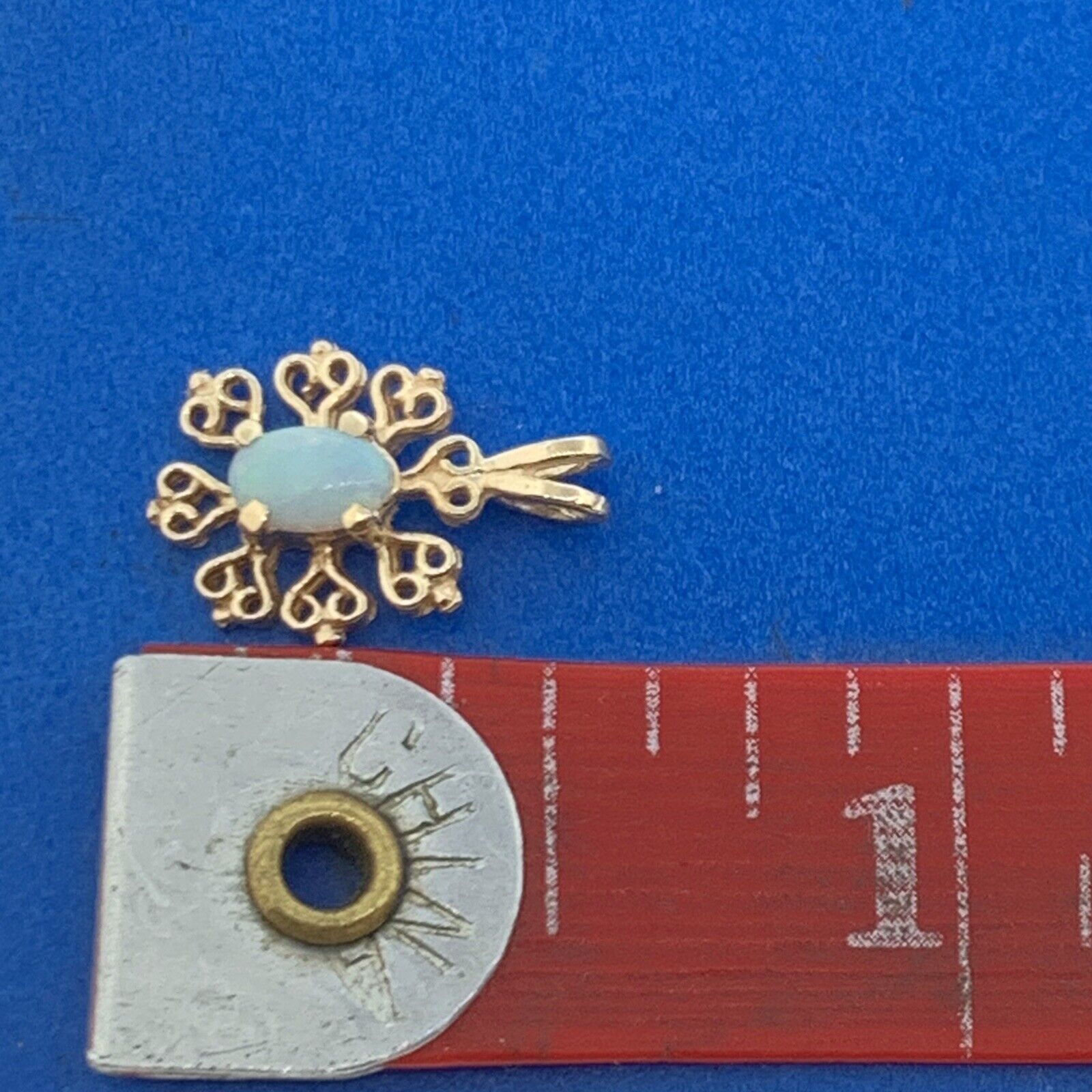 - Designer 14K Yellow Gold Oval Opal Filigree Snowflake Drop Dangle Pendant