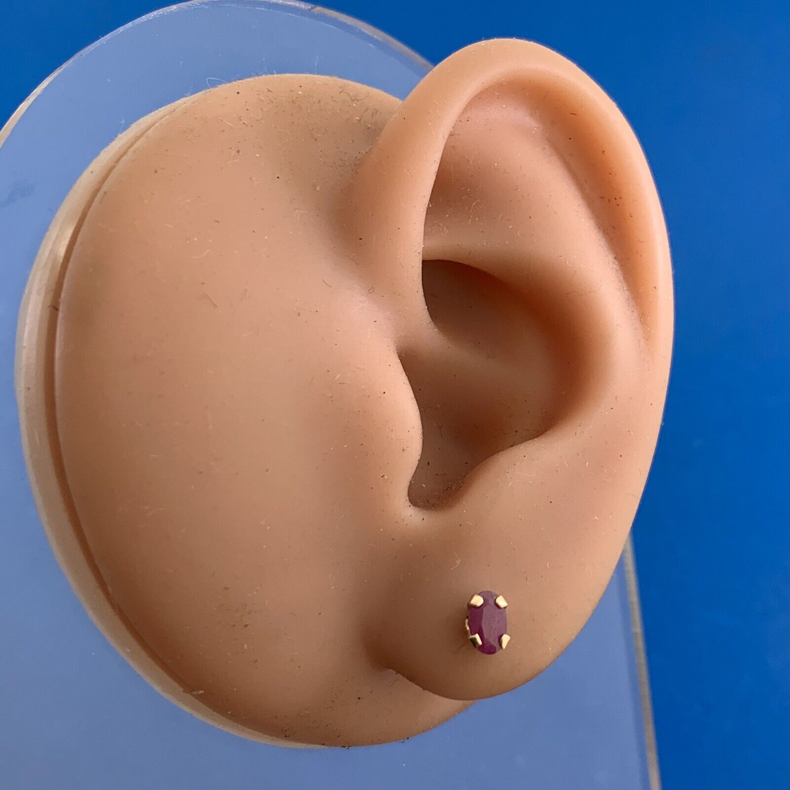 - Designer 14K Yellow Gold Oval Ruby Stud Earrings