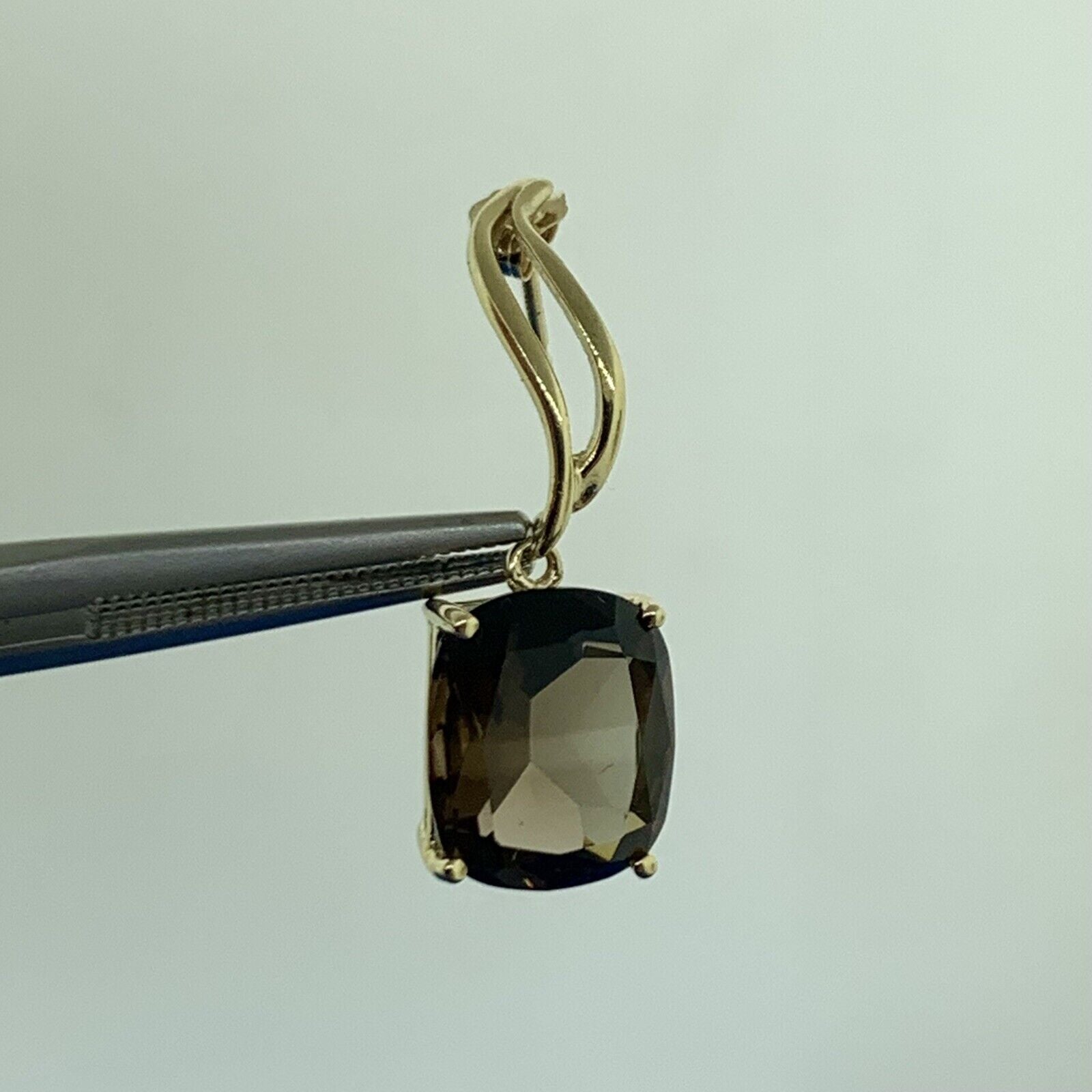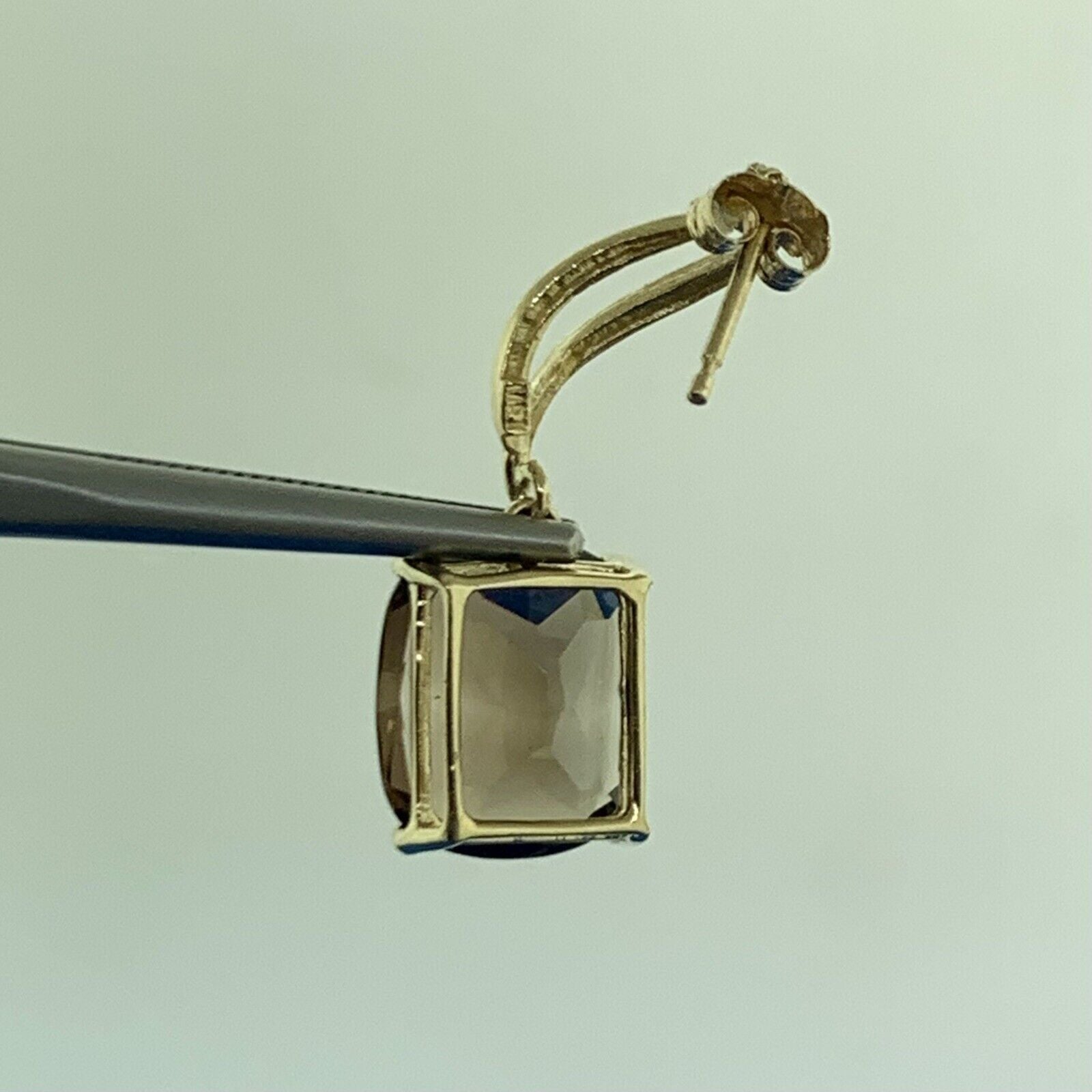 - Designer 14K Yellow Gold Oval Smoky Quartz Modernist Twist Dangle Earrings