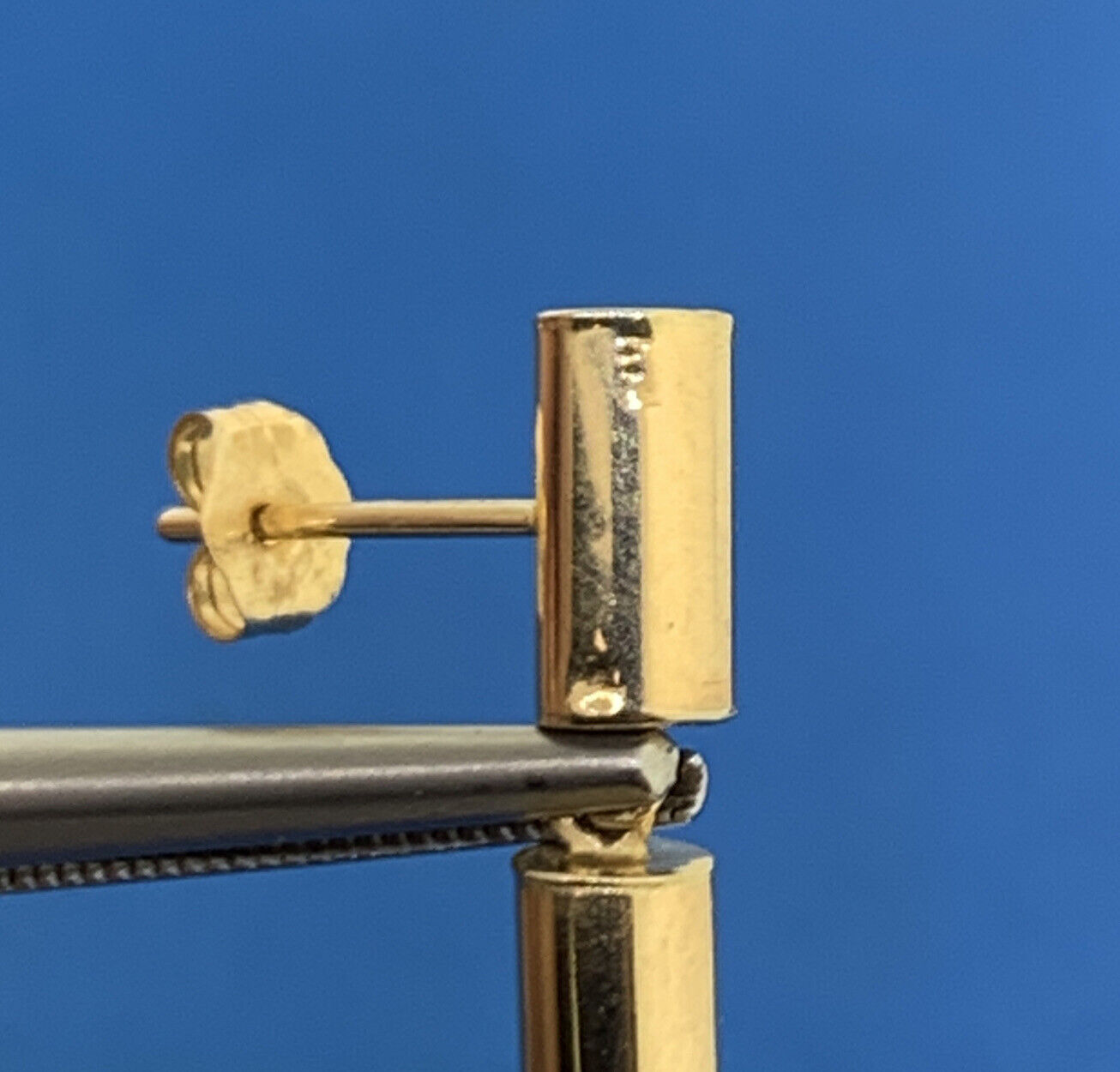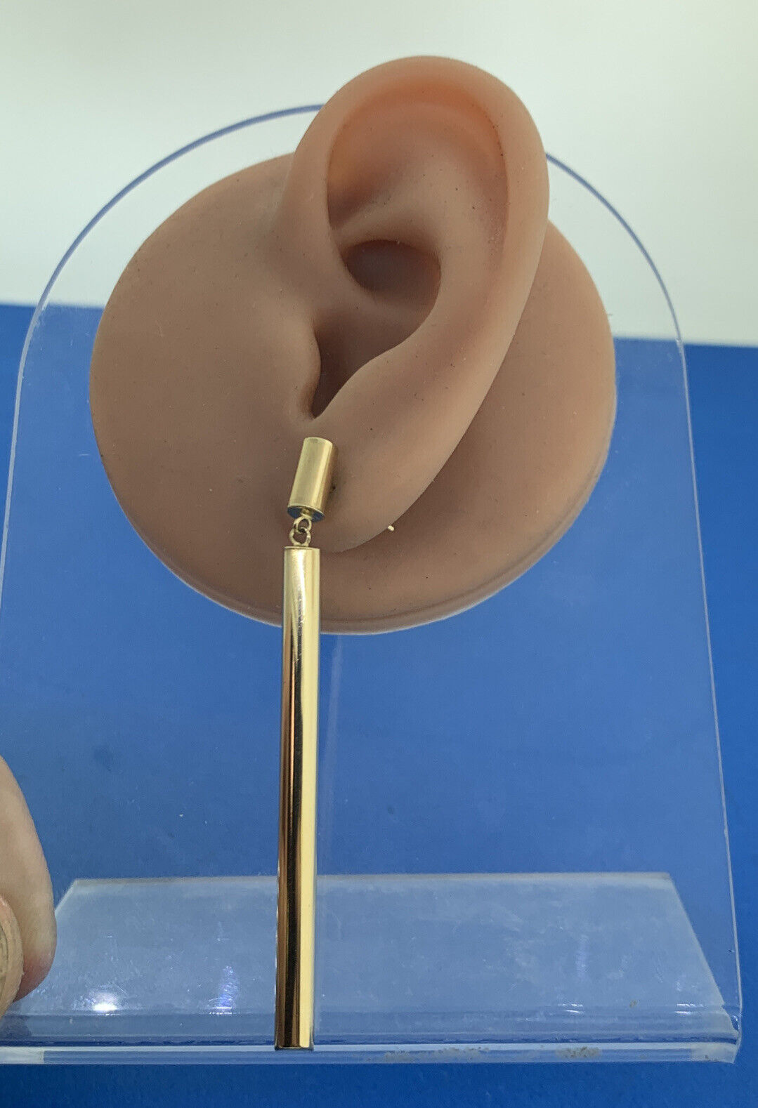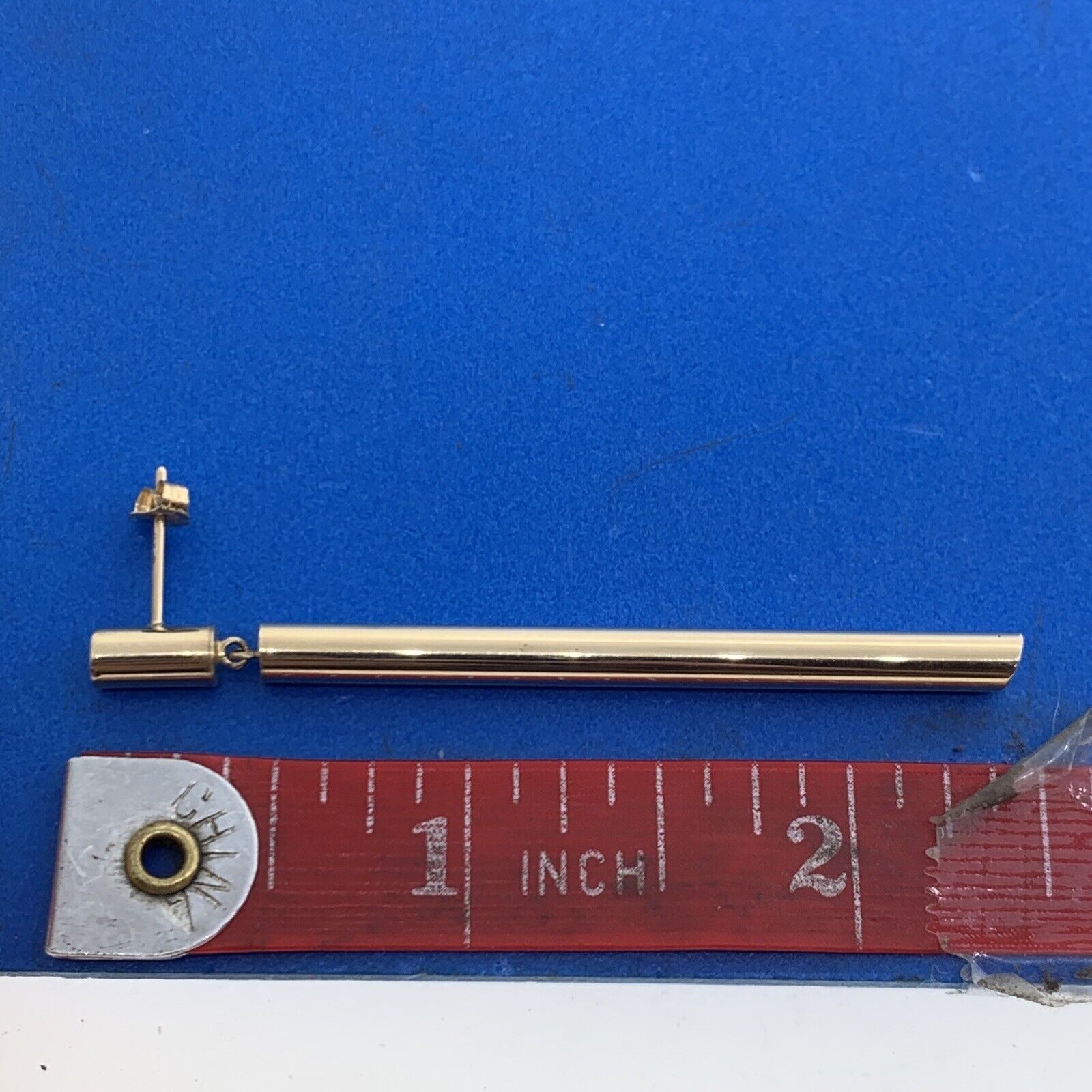 - Designer 14K Yellow Gold Polished Tubular Modernist Drop Dangle Stud Earrings