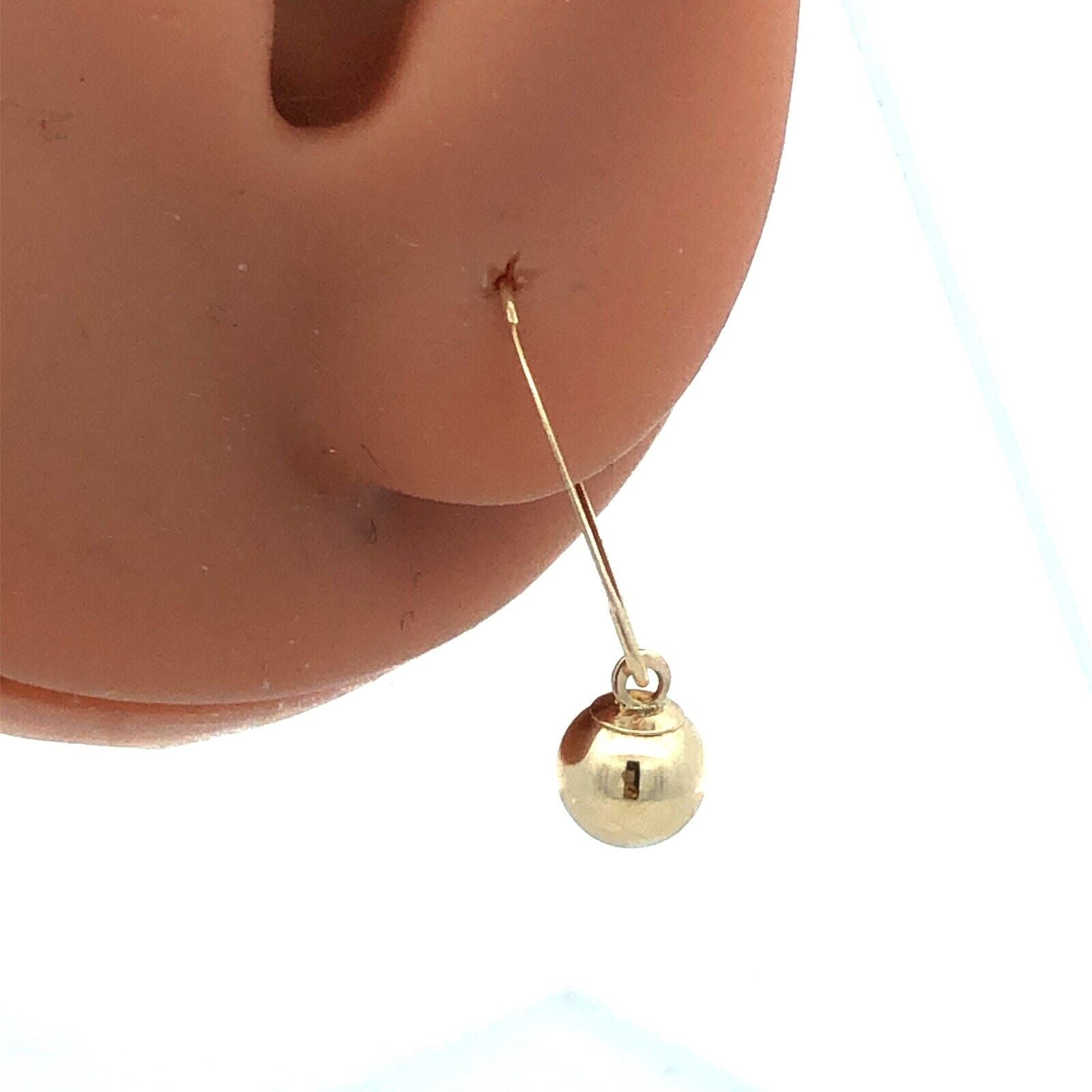 - Designer 14K Yellow Gold Round Ball Charm Oval Hoop Dangle Earrings