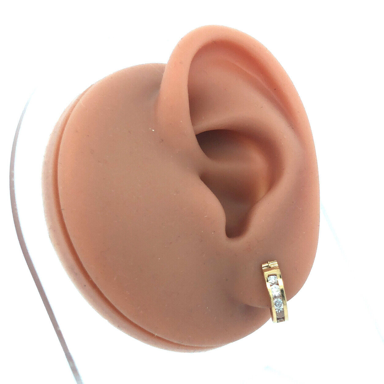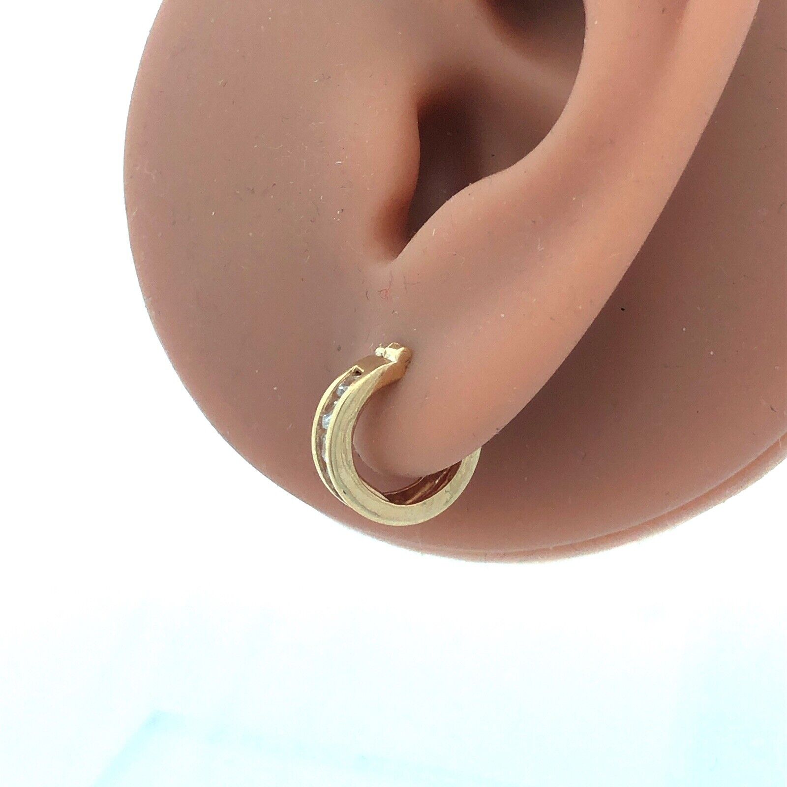 - Designer 14K Yellow Gold Round Cubic Zirconia CZ Huggy Hoop Earrings