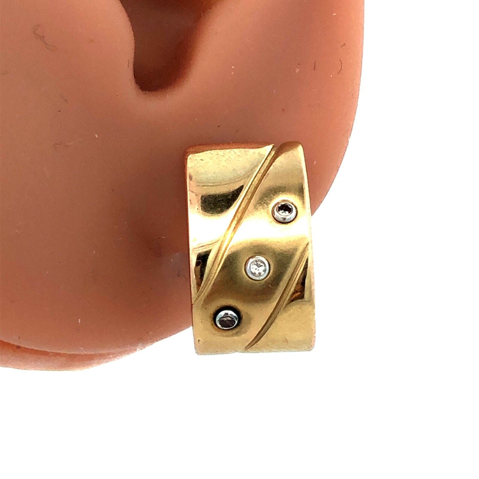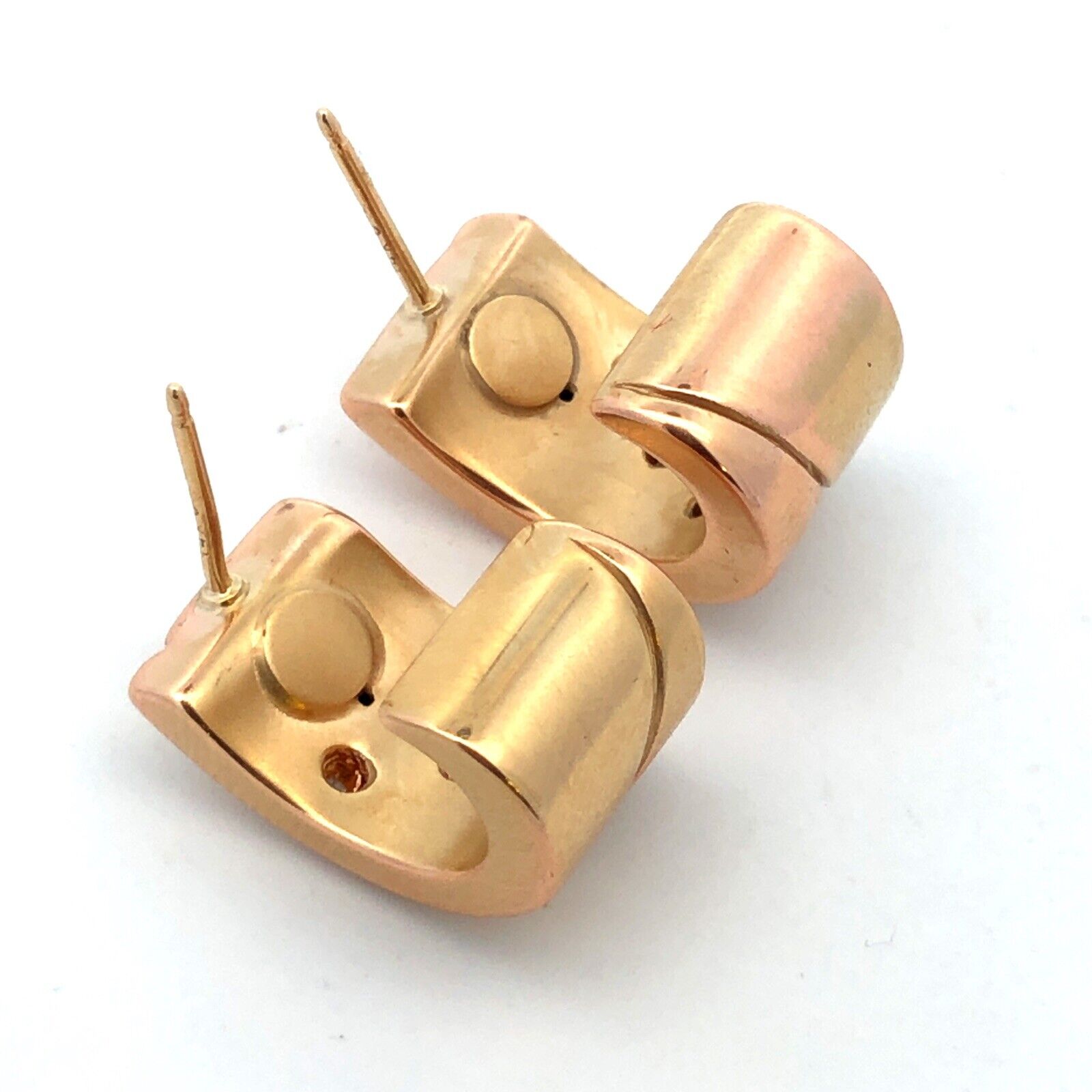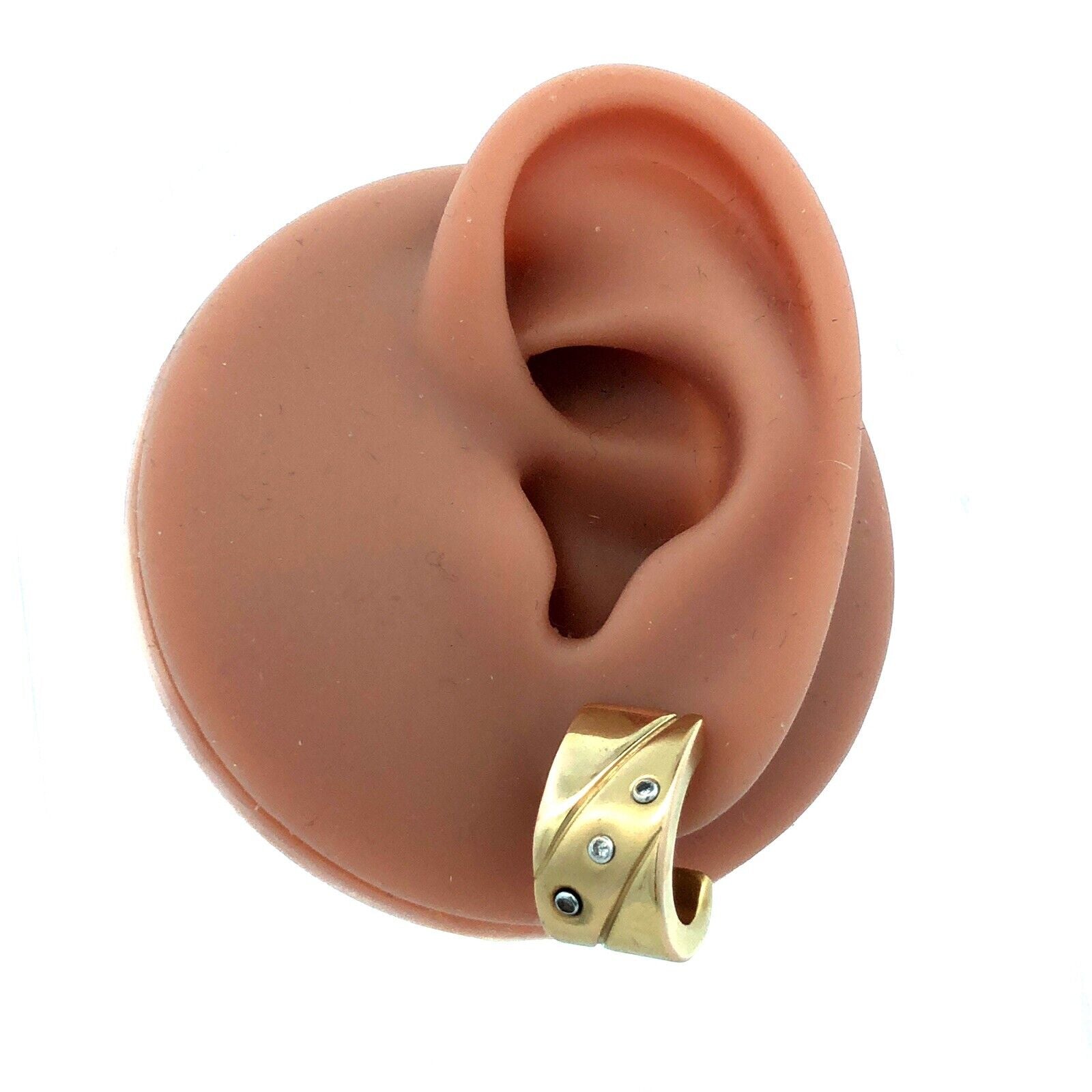 Designer 14K Yellow Gold Round Diamond Modernist Drop Half Hoop Stud Earrings