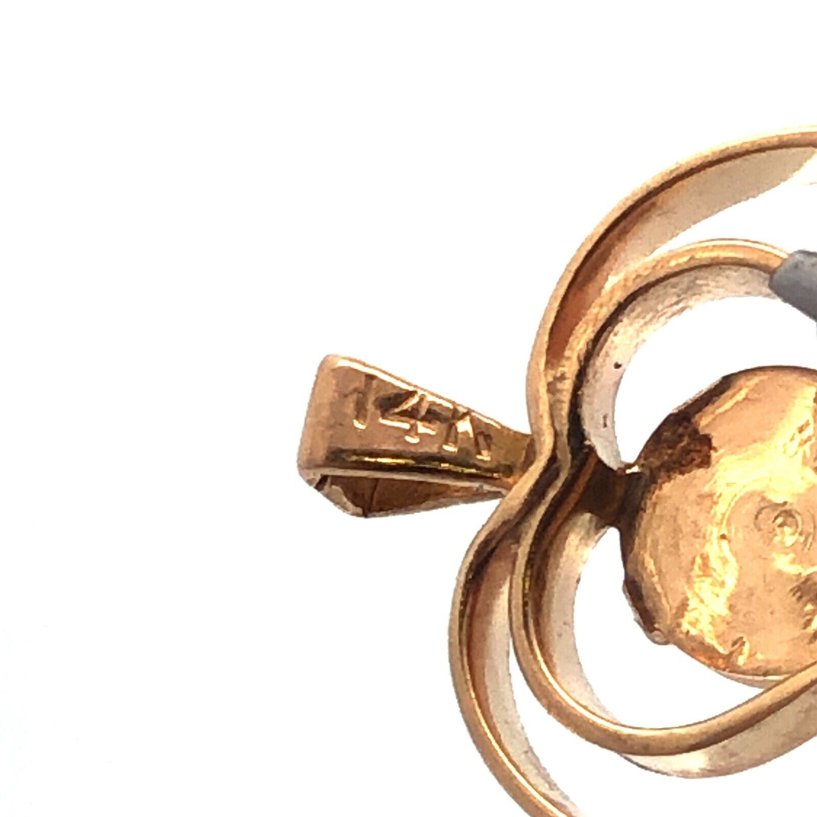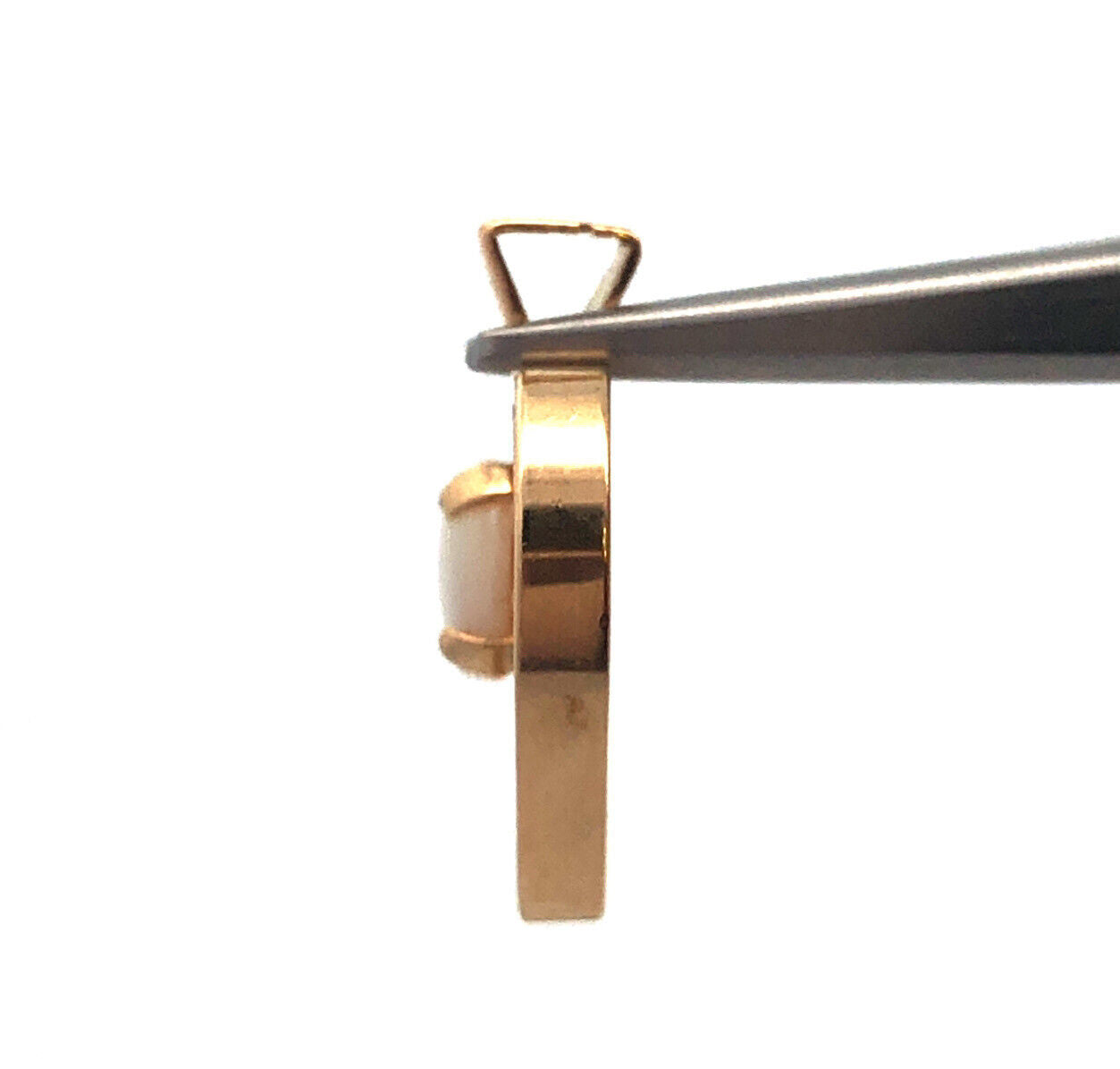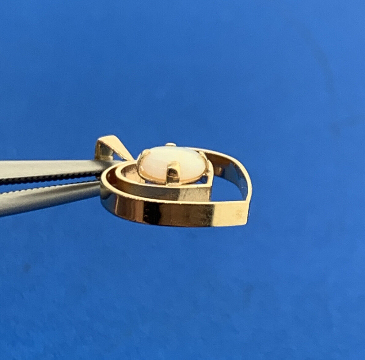 - Designer 14K Yellow Gold Round Opal Open Work Double Heart Pendant