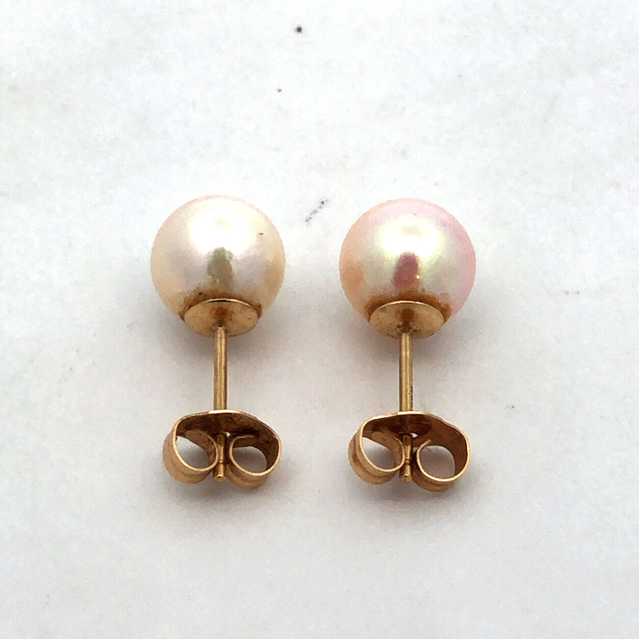 Designer 14K Yellow Gold Round Pearl Ball Stud Earrings