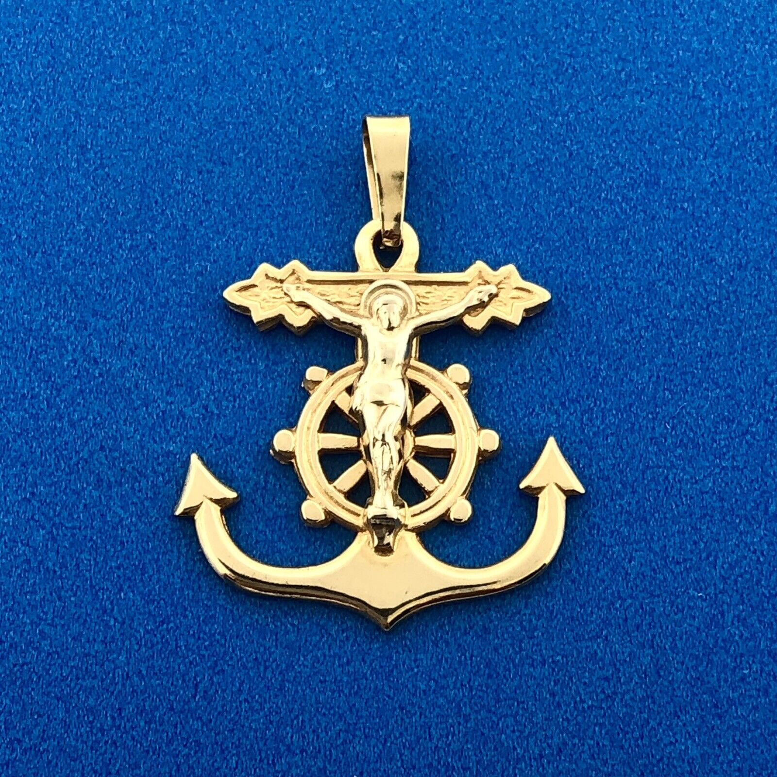 - Designer 14K Yellow Gold Sailor's Crucifix Anchor Ships Wheel Charm Pendant