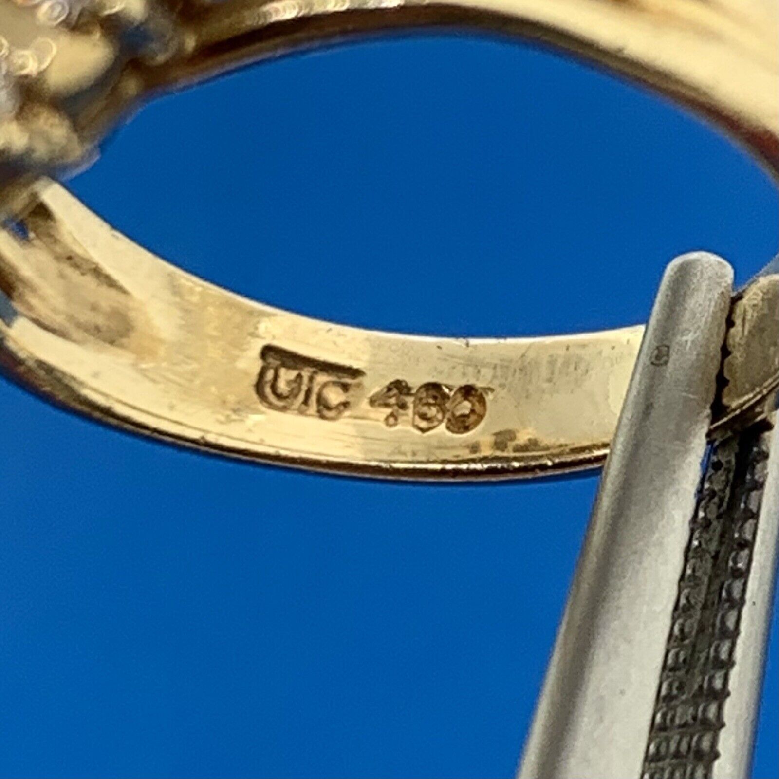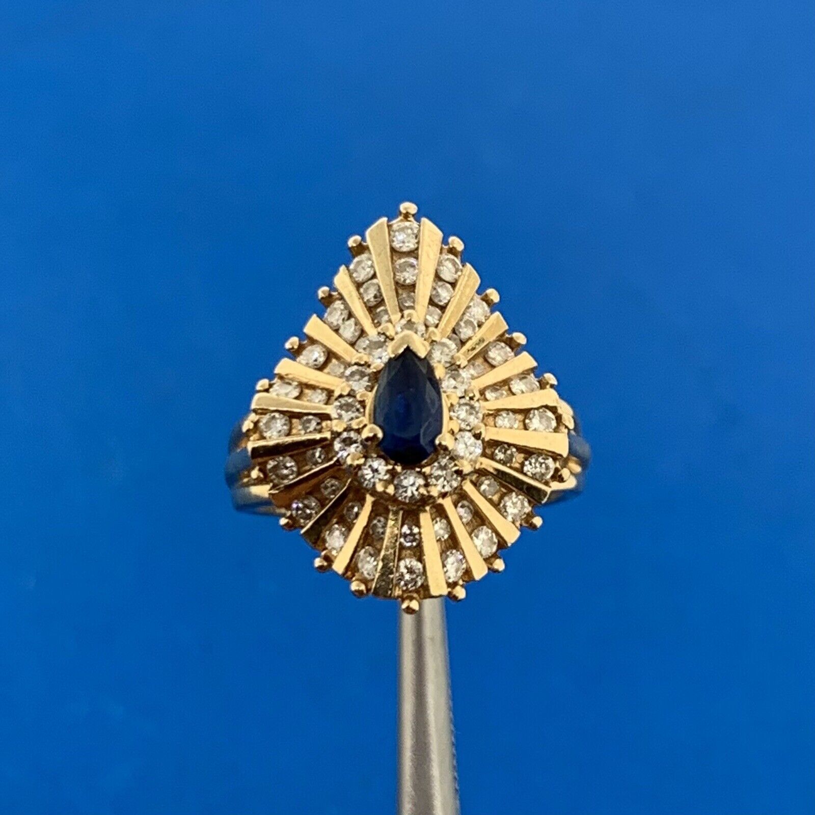 Designer 14K Yellow Gold Sapphire Diamond Cluster Statement Cocktail Ring