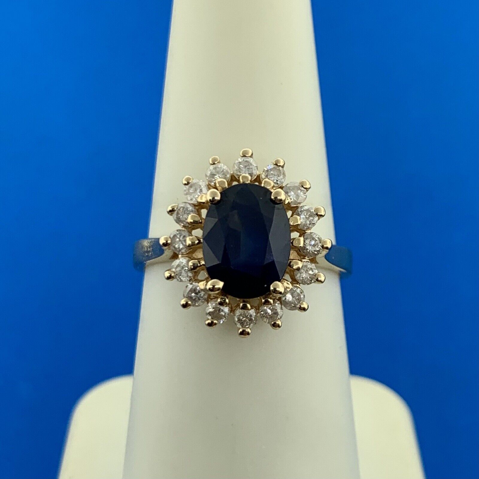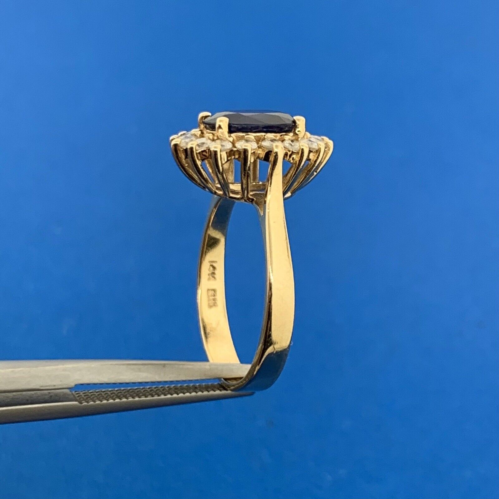 - Designer 14K Yellow Gold Sapphire Diamond Halo September Anniversary Ring