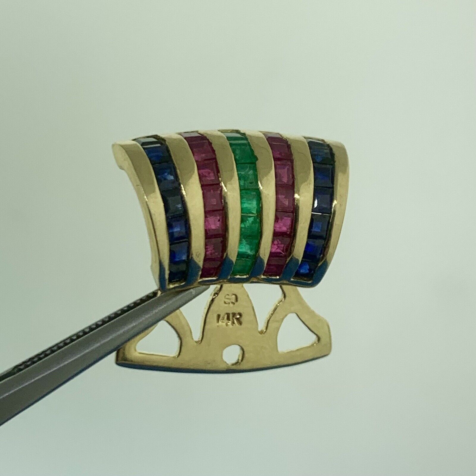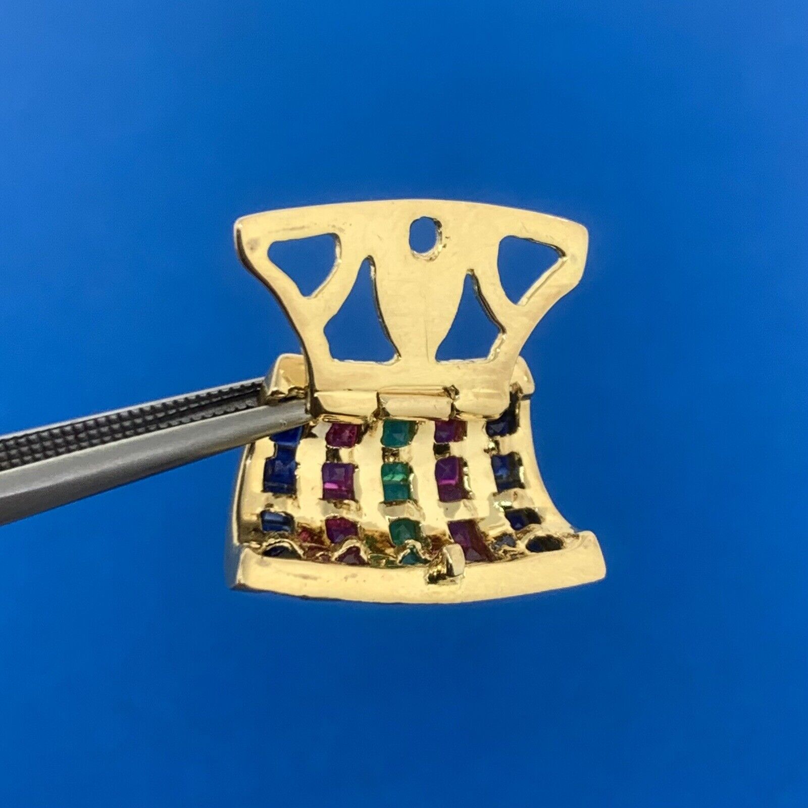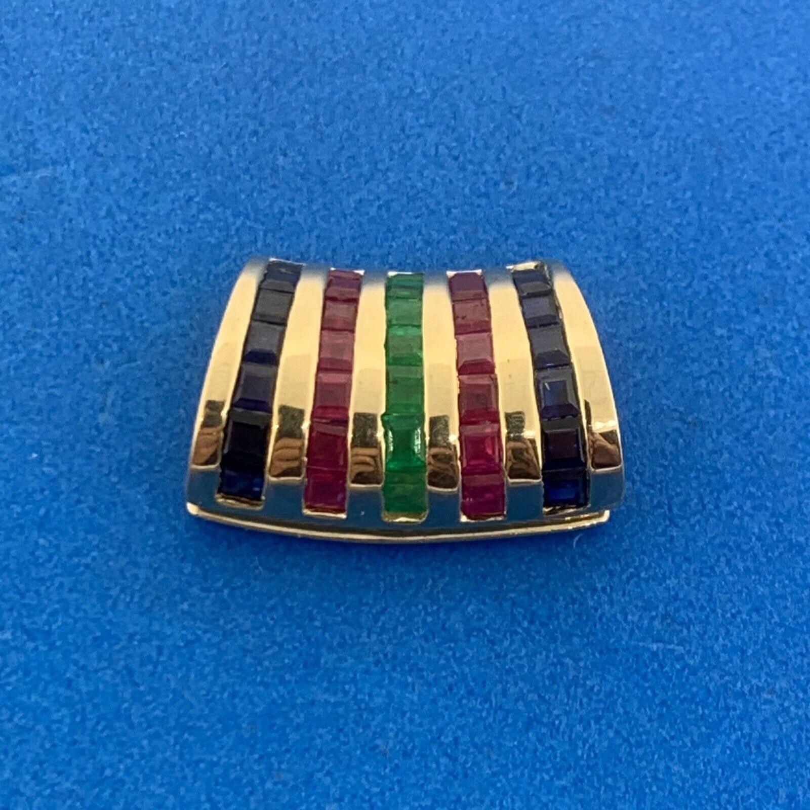 Designer 14K Yellow Gold Sapphire Ruby Emerald Modernist Enhancer Pendant