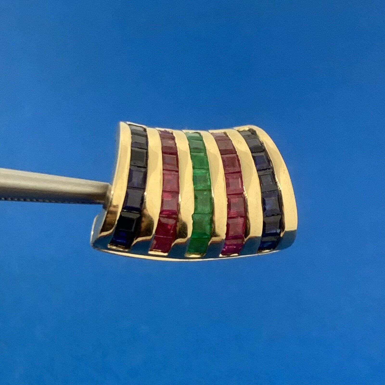 - Designer 14K Yellow Gold Sapphire Ruby Emerald Modernist Enhancer Pendant