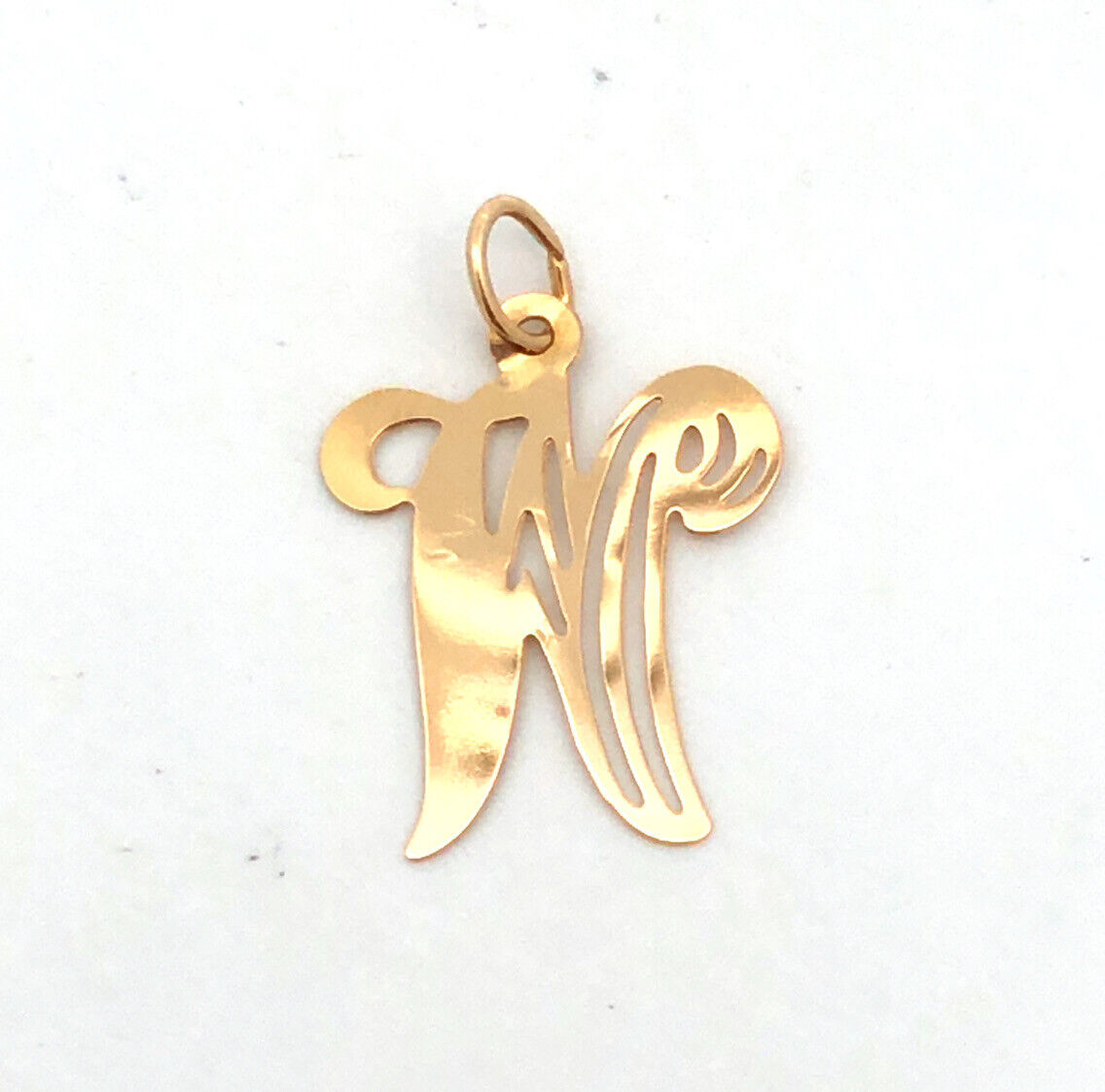- Designer 14K Yellow Gold Script Initial W Monogram Alphabet Charm Pendant