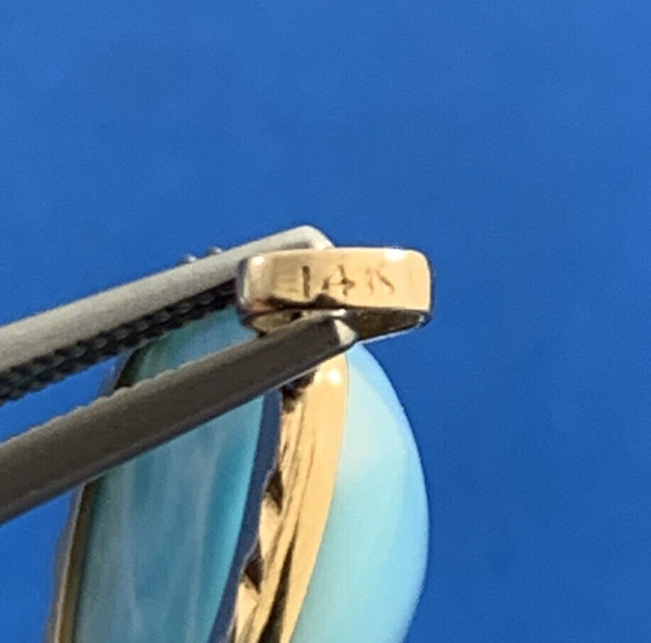 - Designer 14K Yellow Gold Teardrop Larimar Statement Pendant