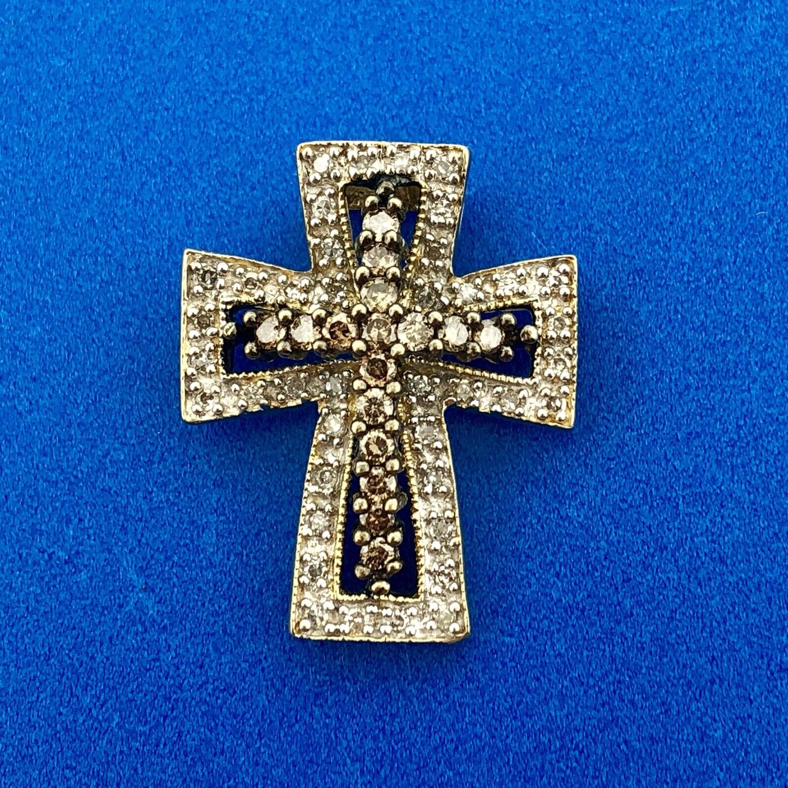 - Designer 14K Yellow Gold White Champagne Diamond Statement Cross Pendant