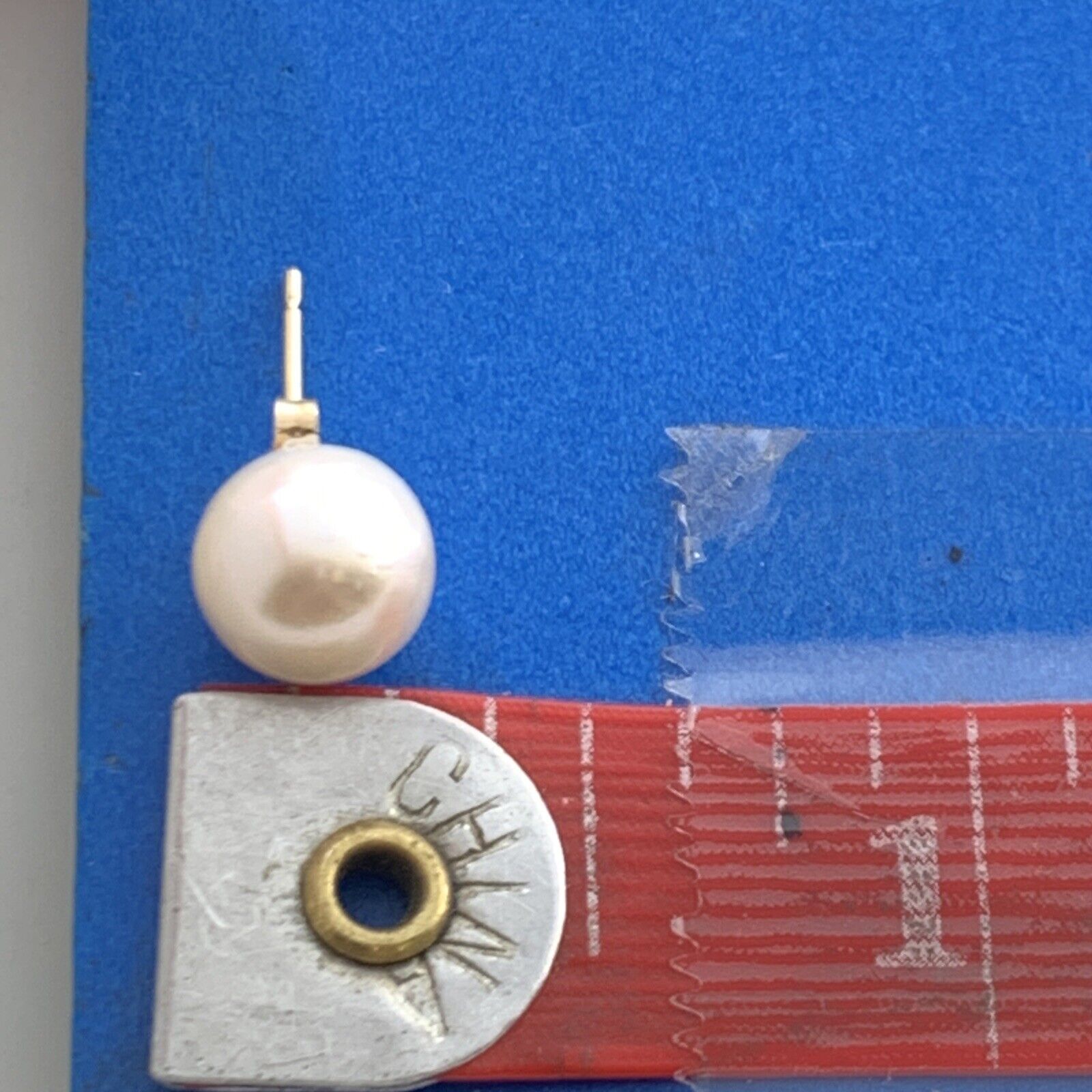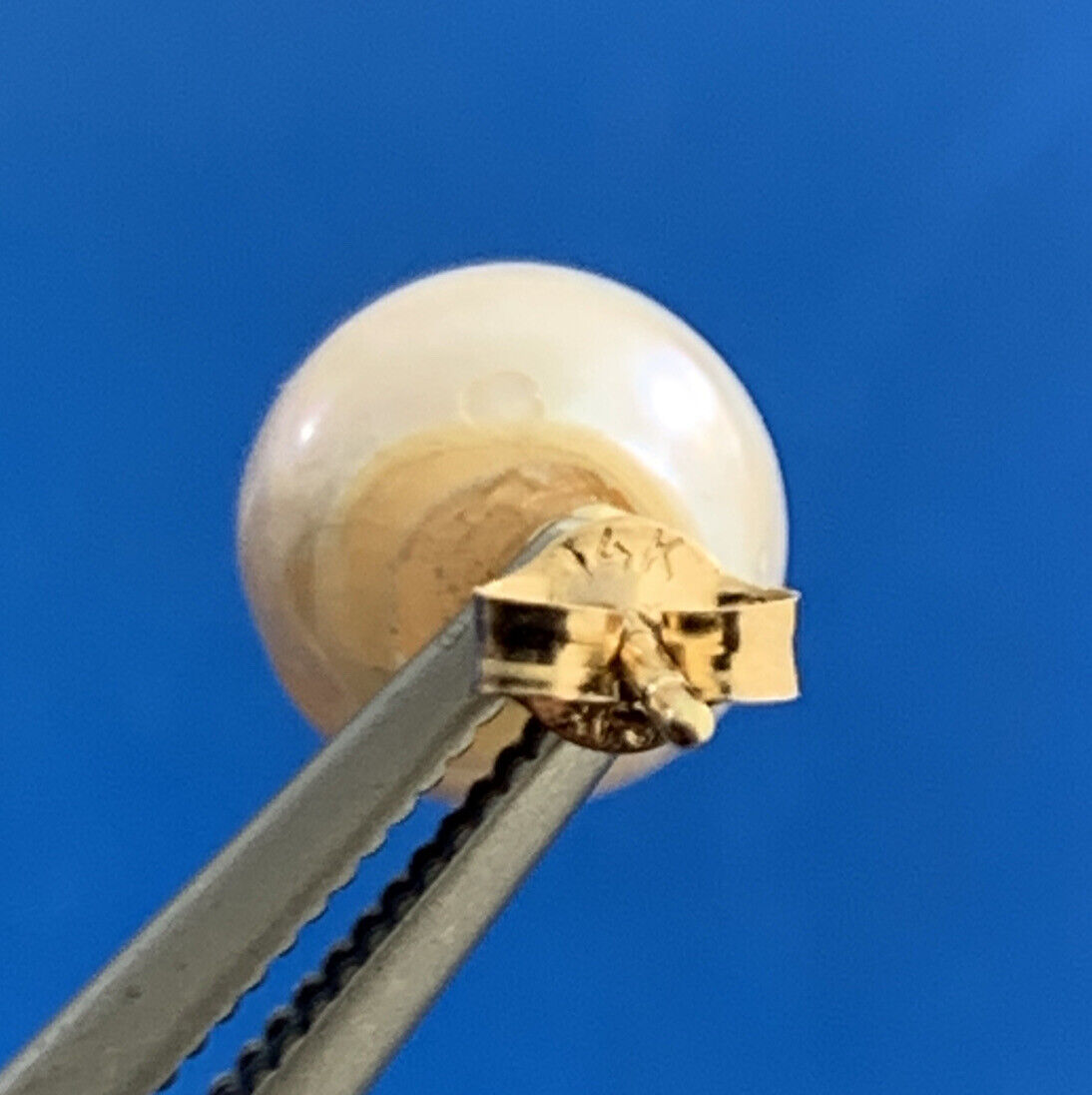 Designer 14K Yellow Gold White Pearl Solitaire Statement Stud Earrings 7.65mm