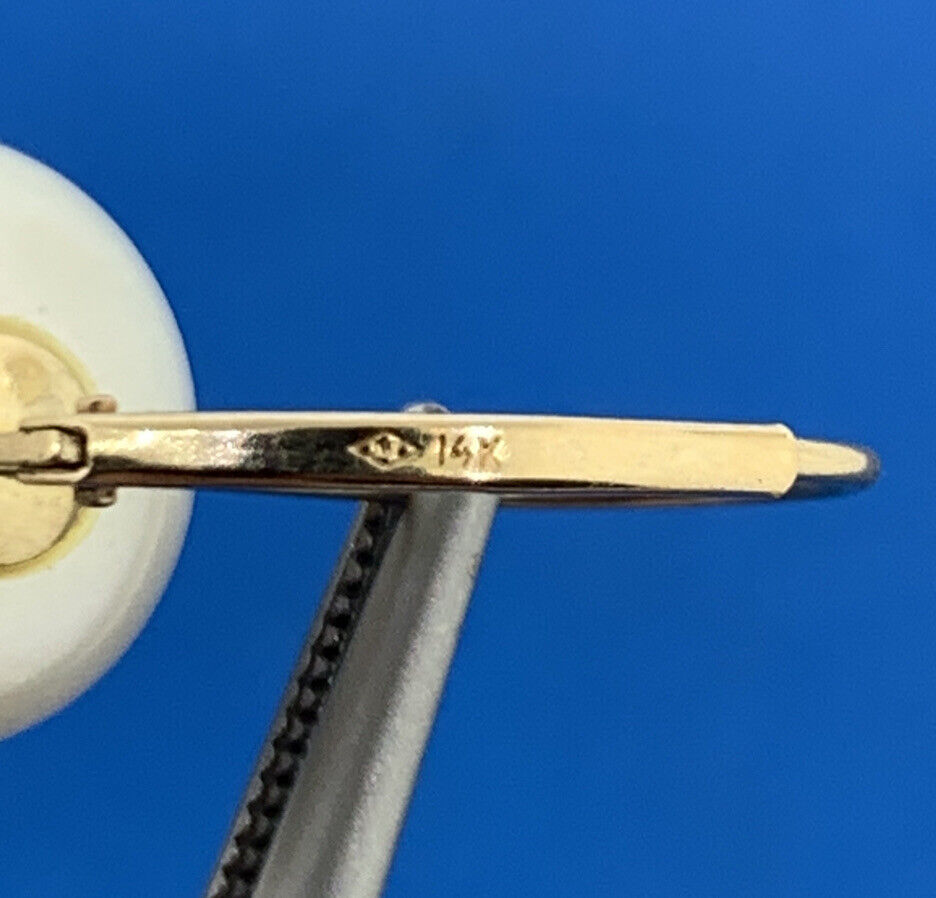 Designer 14K Yellow Gold White Pearl Statement Lever Back Earrings