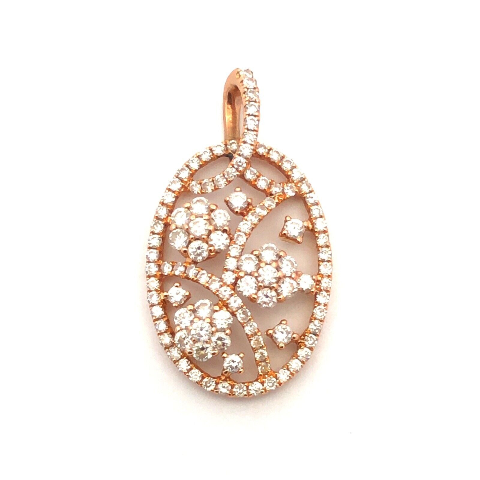 Designer 18K Yellow Gold Round Diamond Pave Floral Oval Pendant