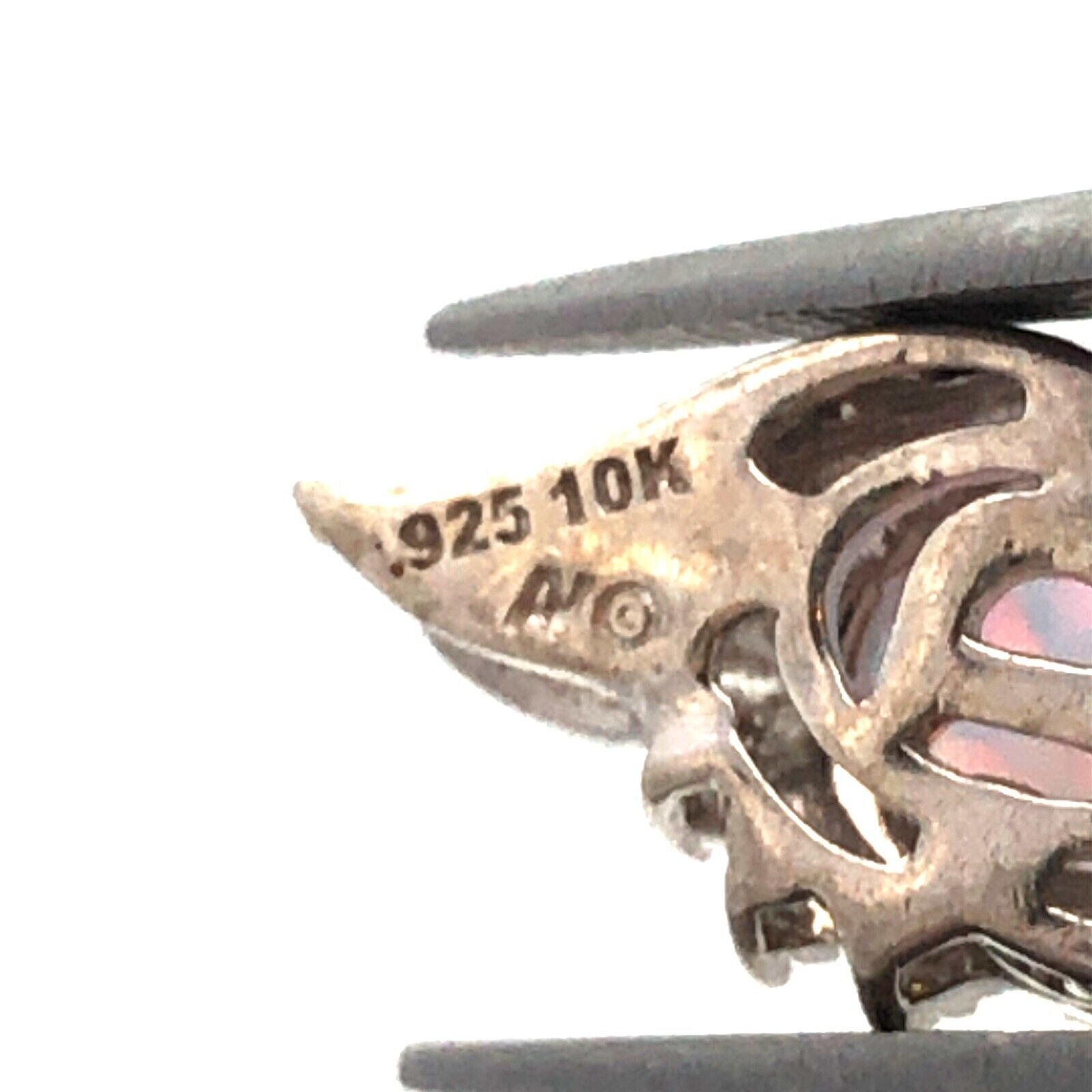 Designer 925 Sterling Silver 10K Gold Opal Diamond Petite Pendant