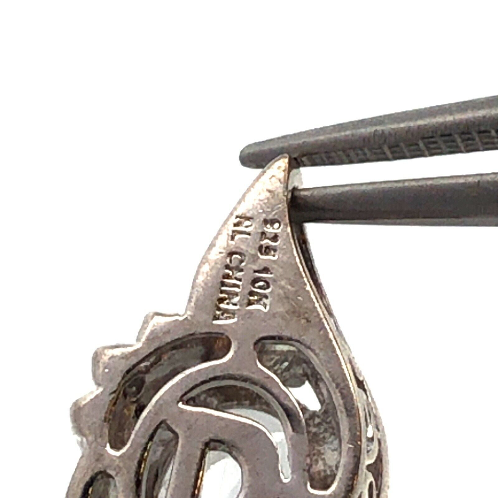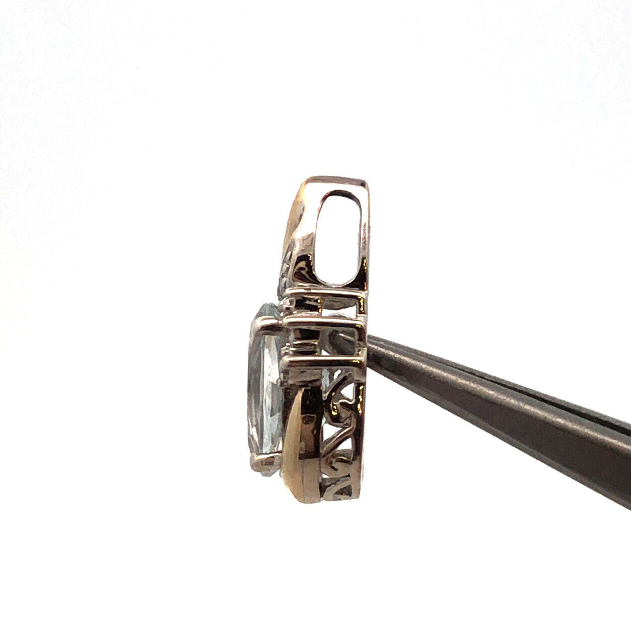 Designer 925 Sterling Silver 10K Gold Oval Light Blue Topaz Diamond Pendant