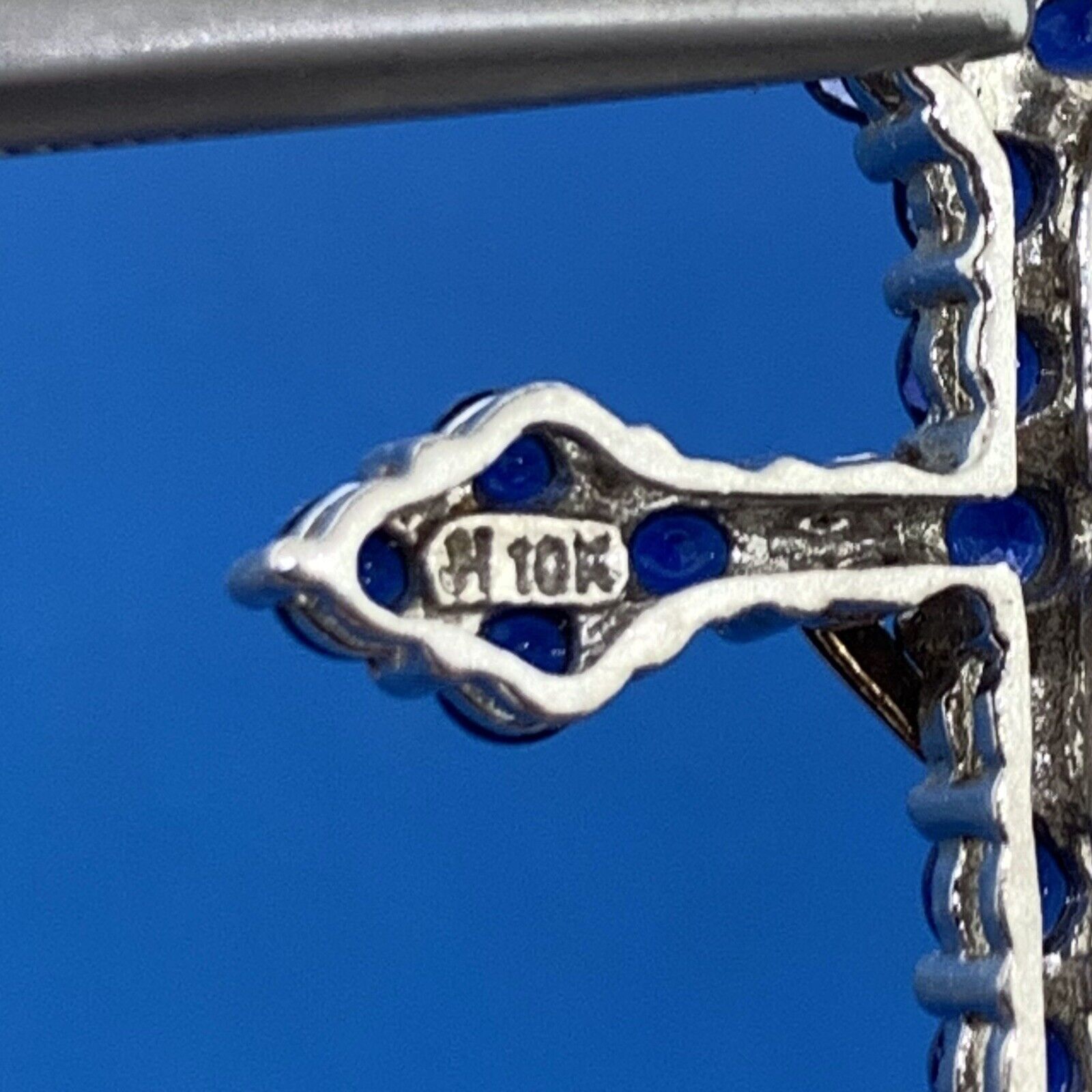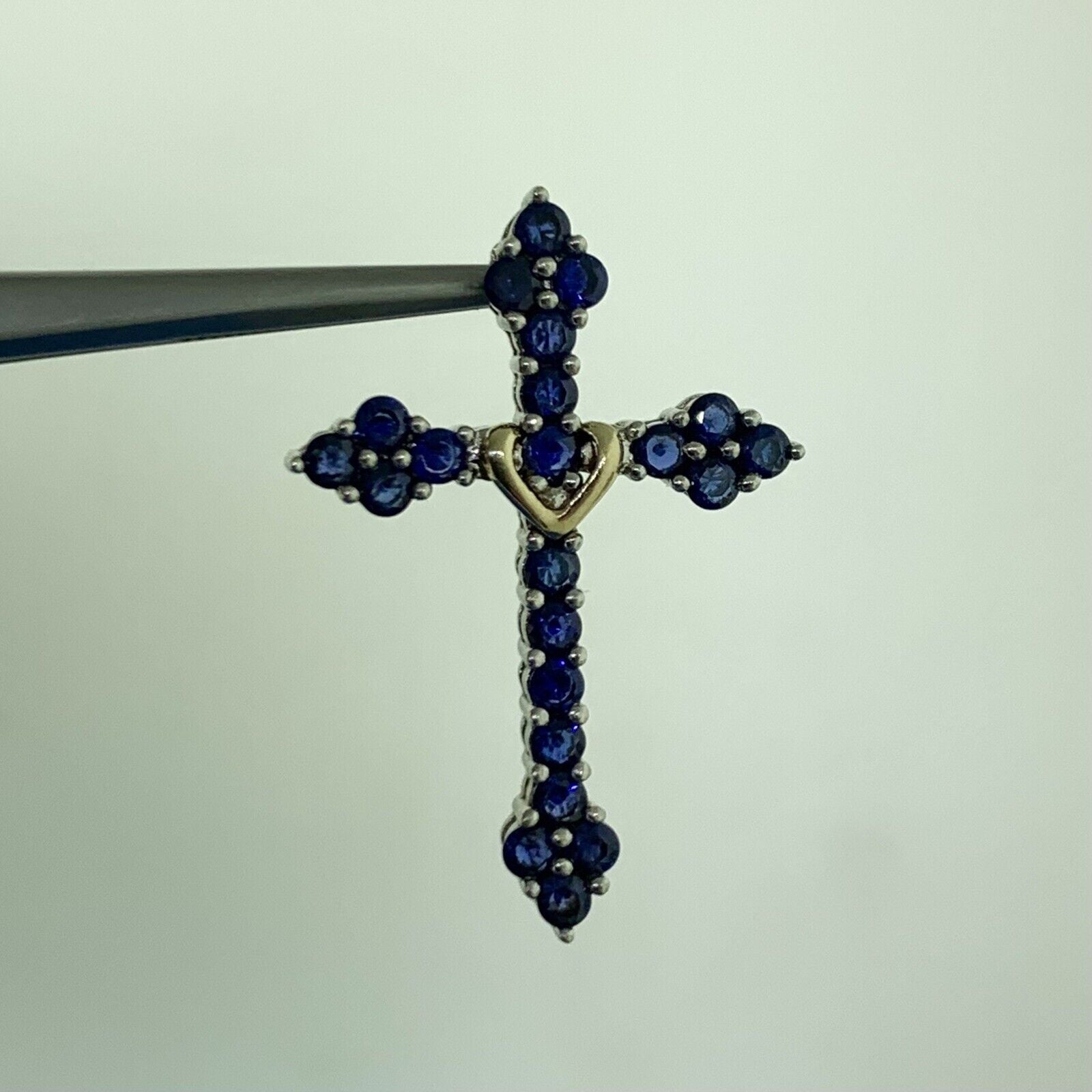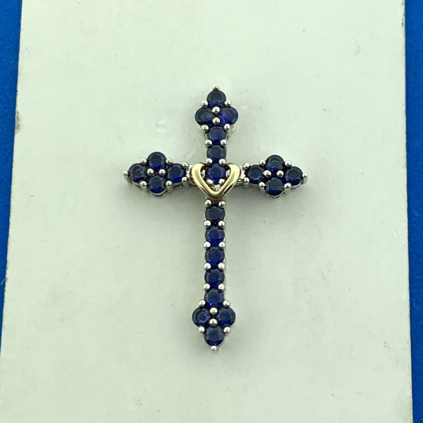 - Designer 925 Sterling Silver 10K Yellow Gold Sapphire Cross Pendant