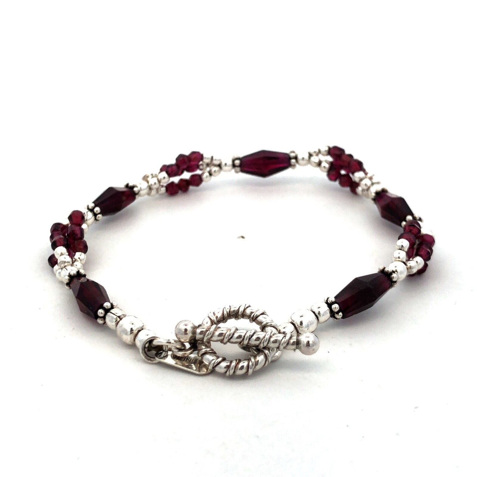 Designer 925 Sterling Silver Amethyst Beaded Textured Toggle Bracelet