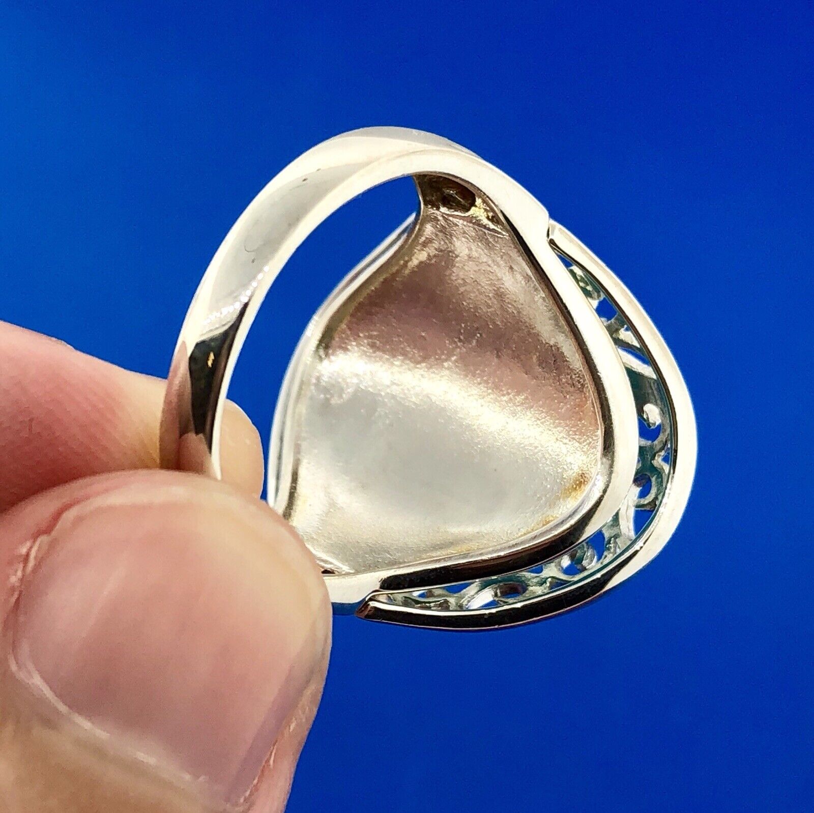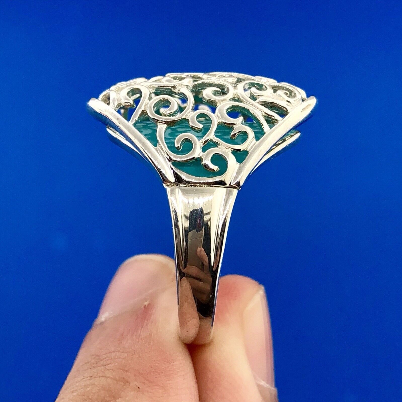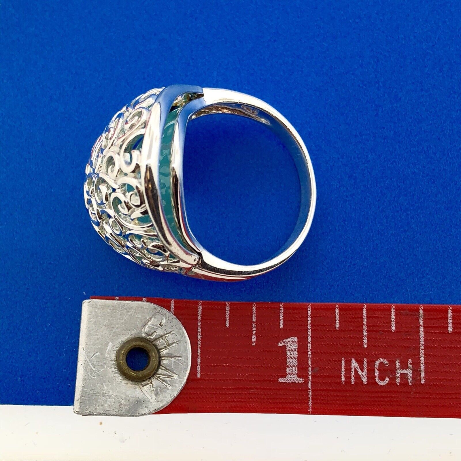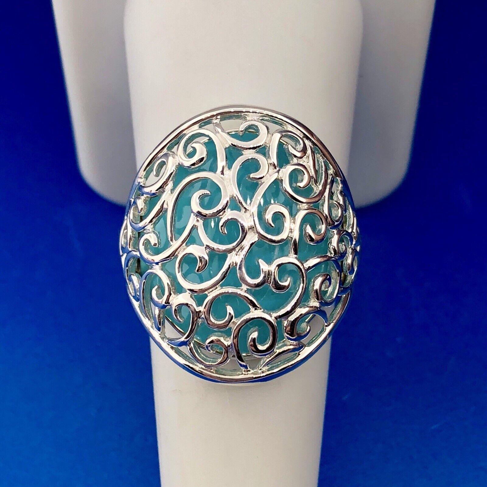 - Designer 925 Sterling Silver Aqua Enamel Swirl Scroll Open Work Statement Ring