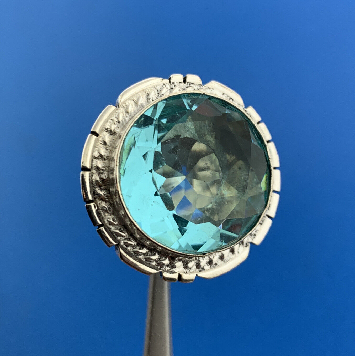 - Blue Cubic Zirconia solitaire total carat weight: approximately 43.0 tcw