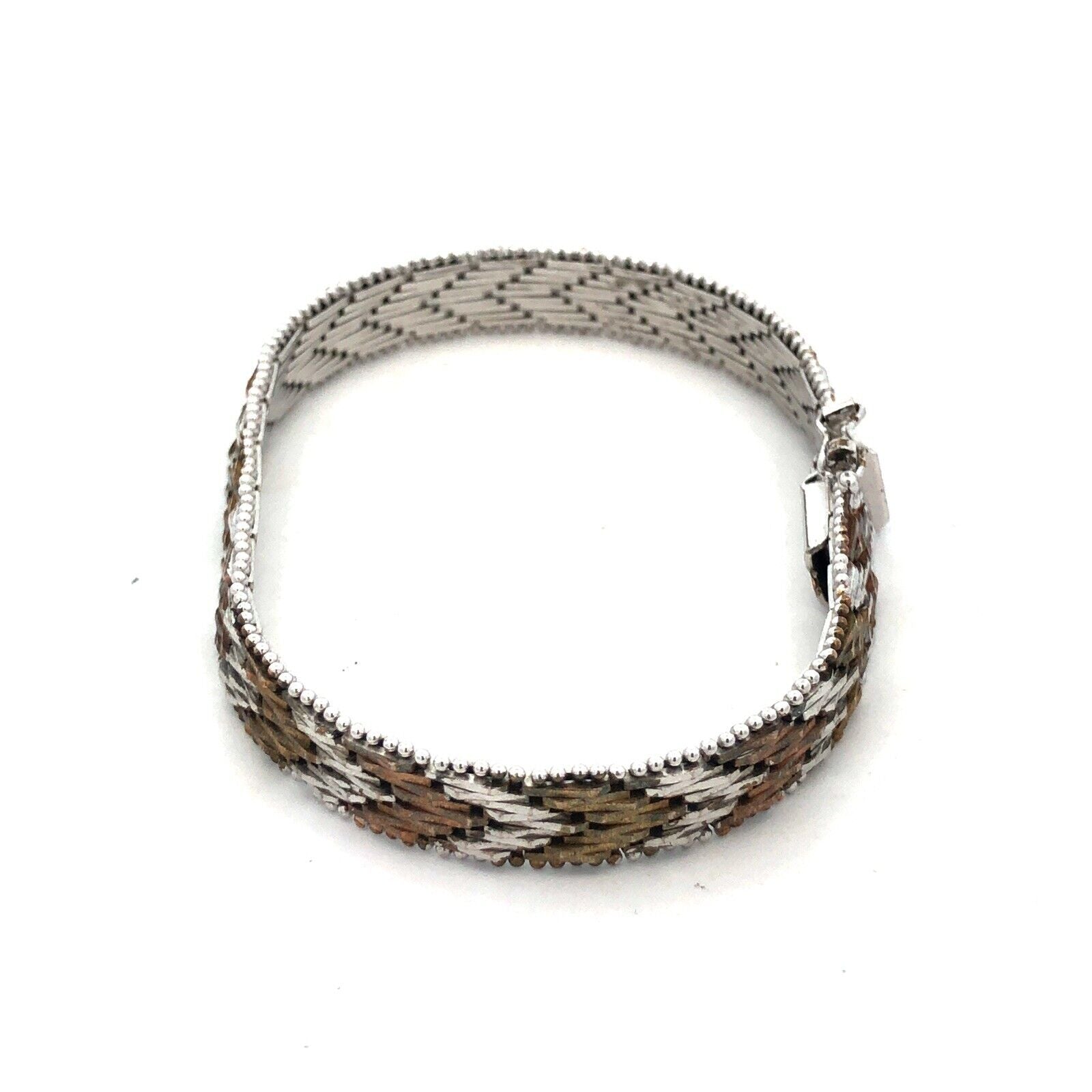 Designer 925 Sterling Silver Bronze Two Tone Herringbone Chevron Bracelet