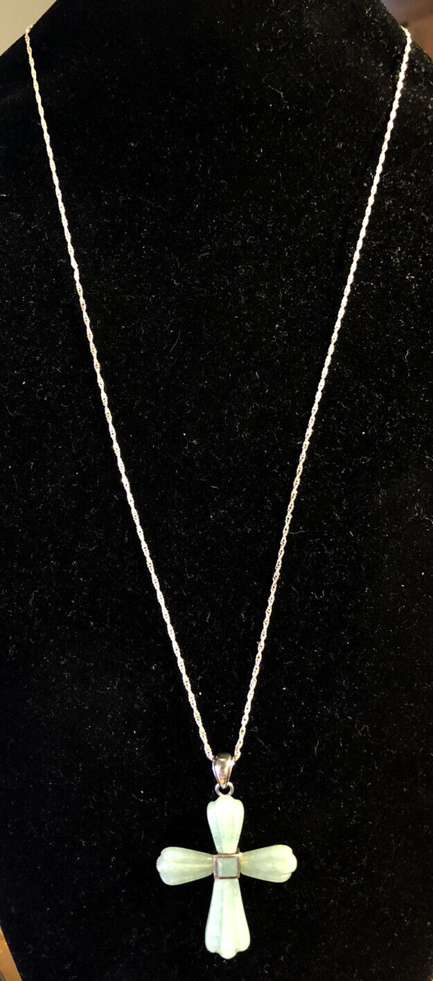 - Designer 925 Sterling Silver Carved Jade Cross Statement Pendant Necklace