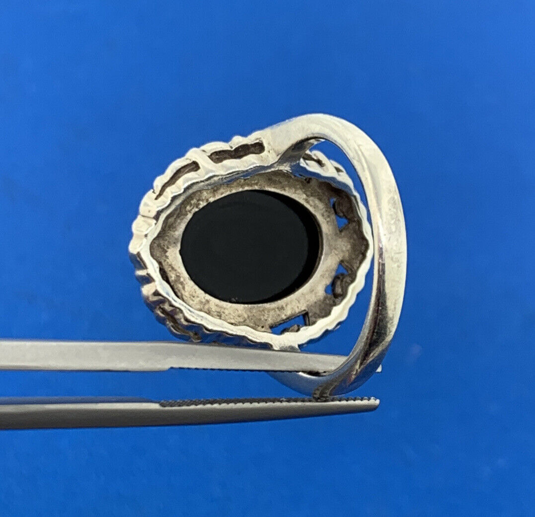 - Designer 925 Sterling Silver Carved MOP Black Onyx Marcasite Cameo Cocktail Ring