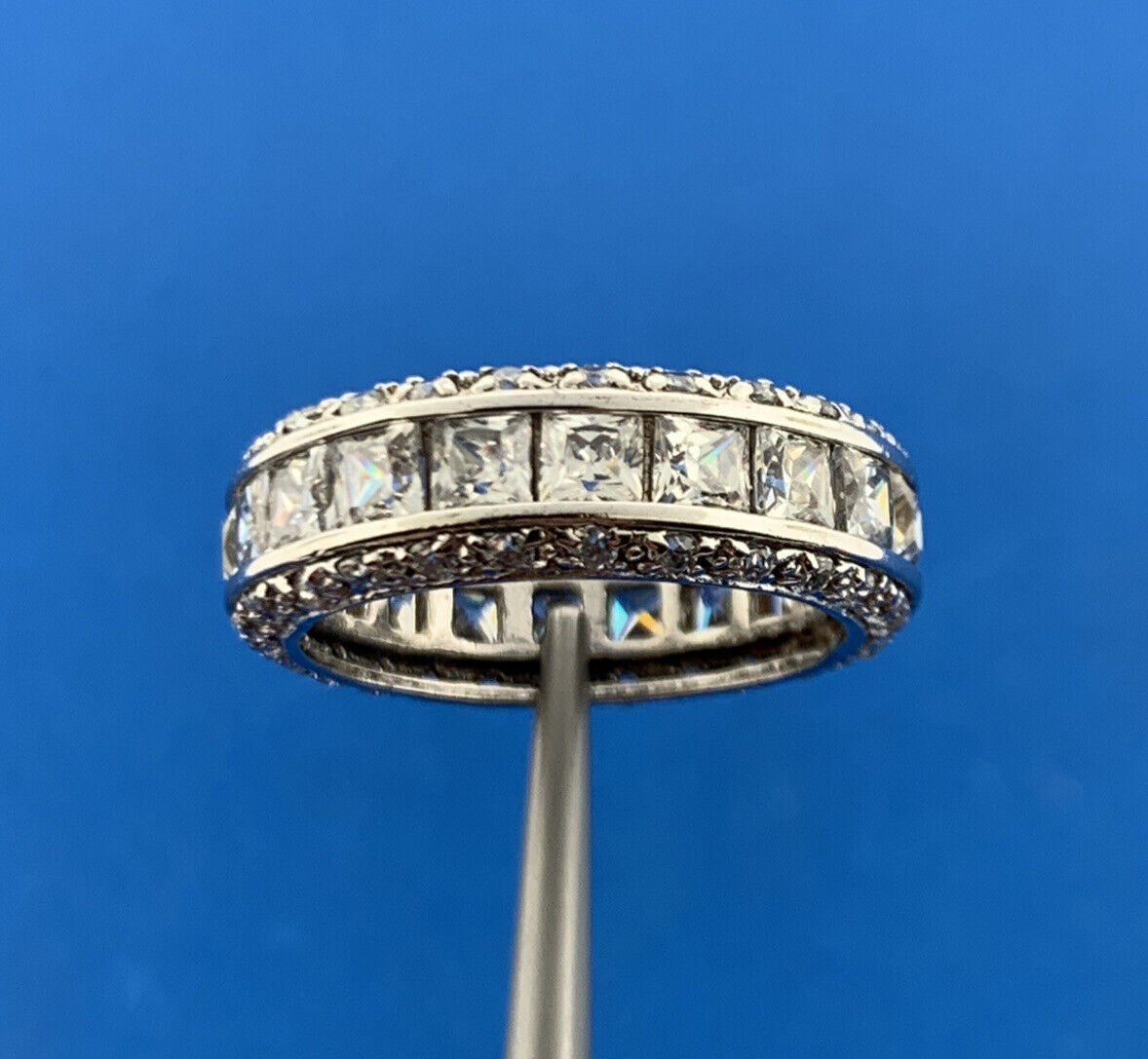 Designer 925 Sterling Silver Cubic Zirconia CZ Cigar Band Eternity Ring