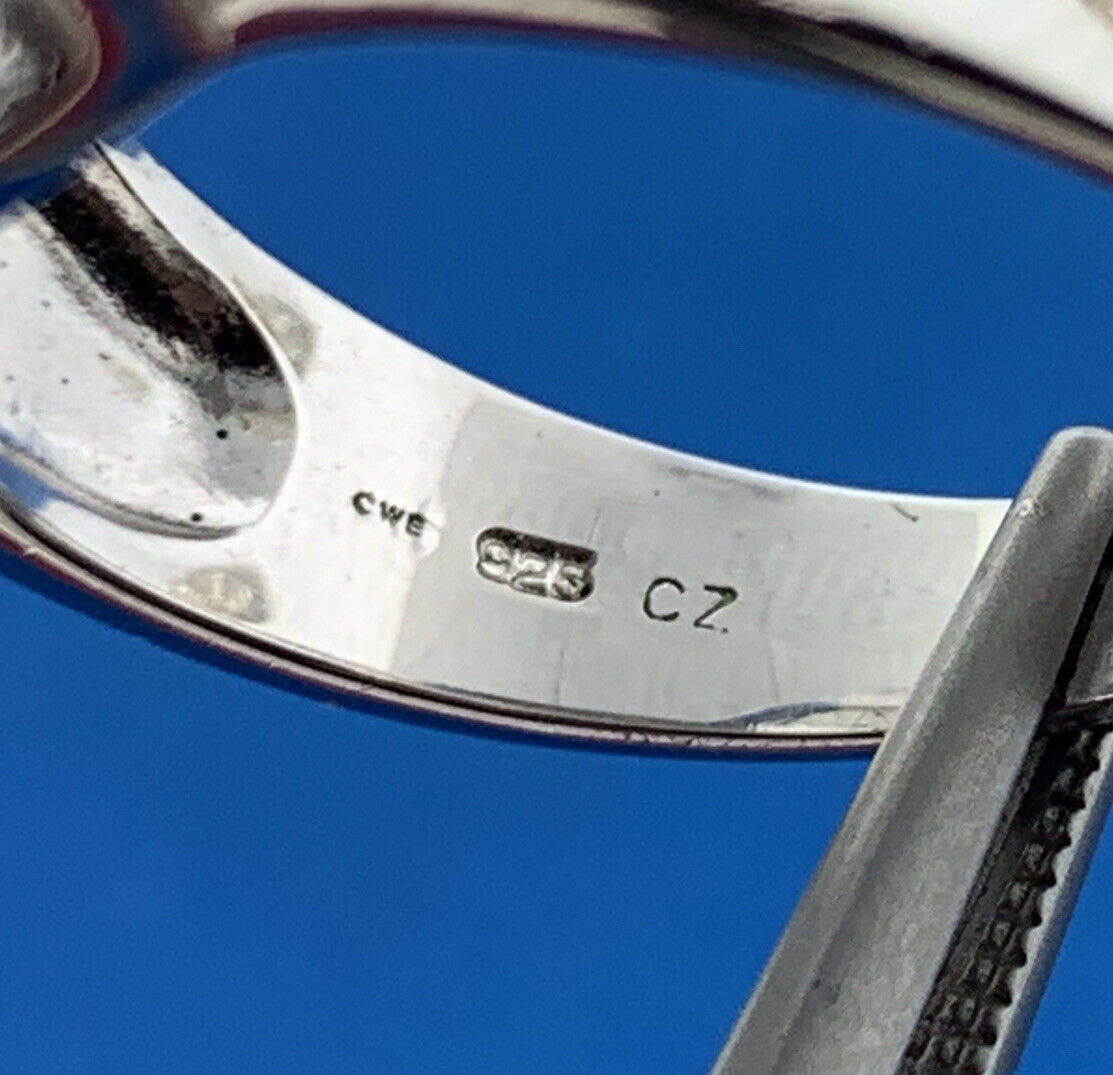 - Designer 925 Sterling Silver Cubic Zirconia Solitaire W/Accents Statement Ring