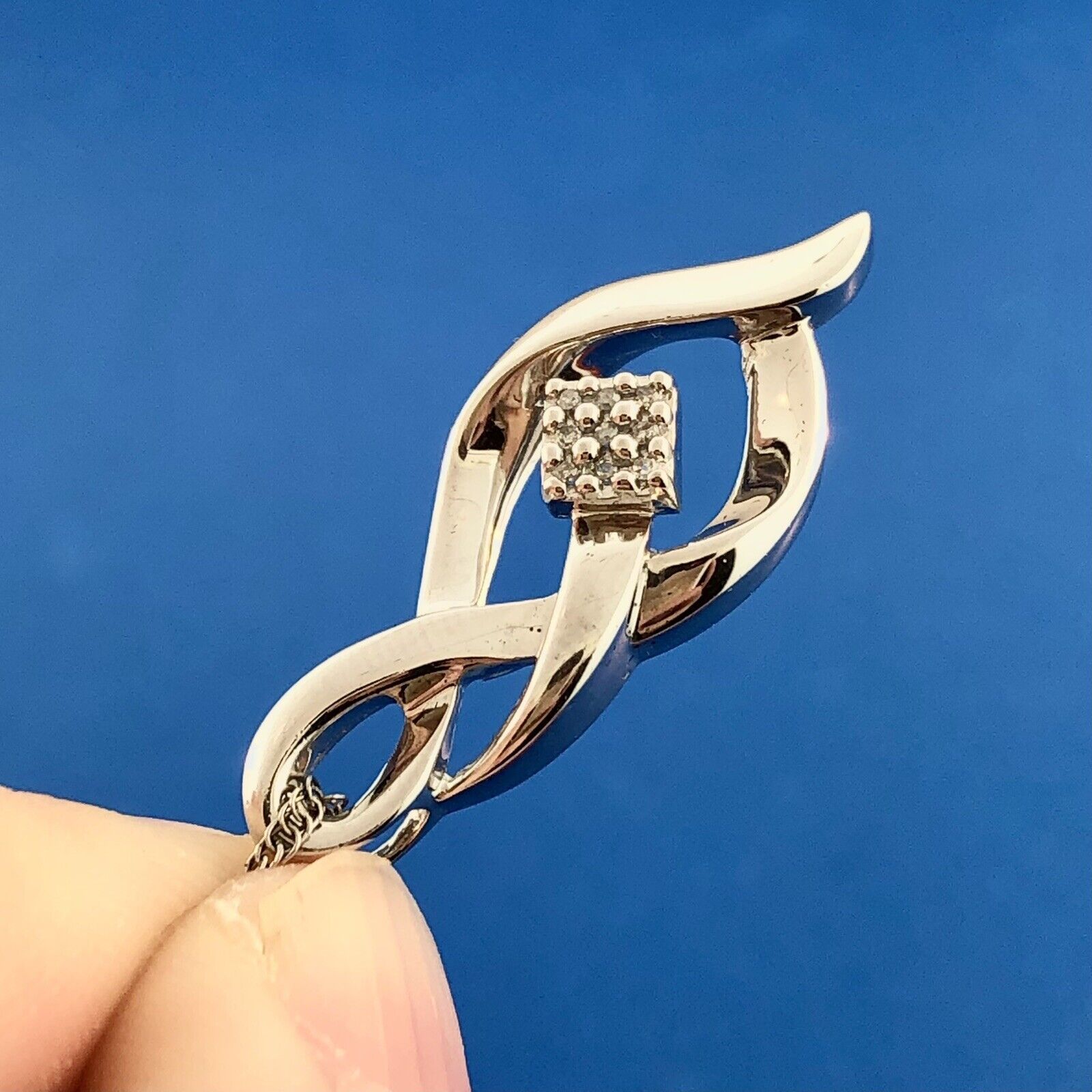 Designer 925 Sterling Silver Diamond Infinity Eternity Anniversary Necklace