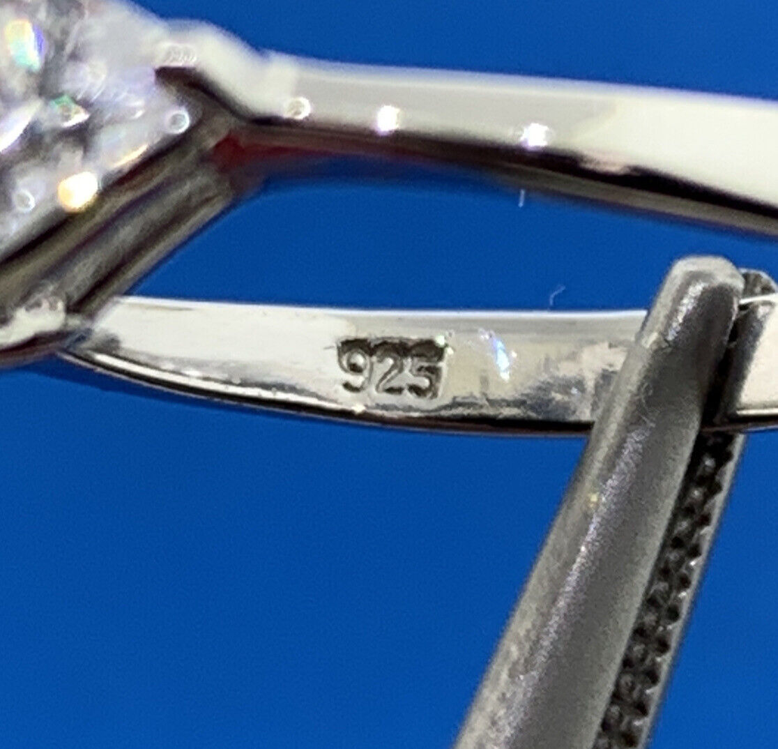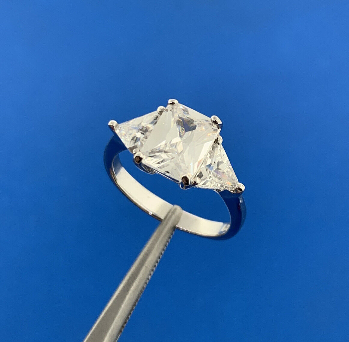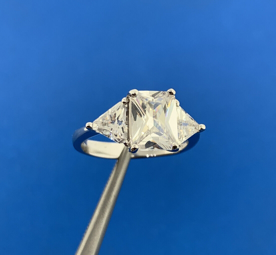 - Designer 925 Sterling Silver Emerald Cut Cubic Zirconia Triangle Accented Ring