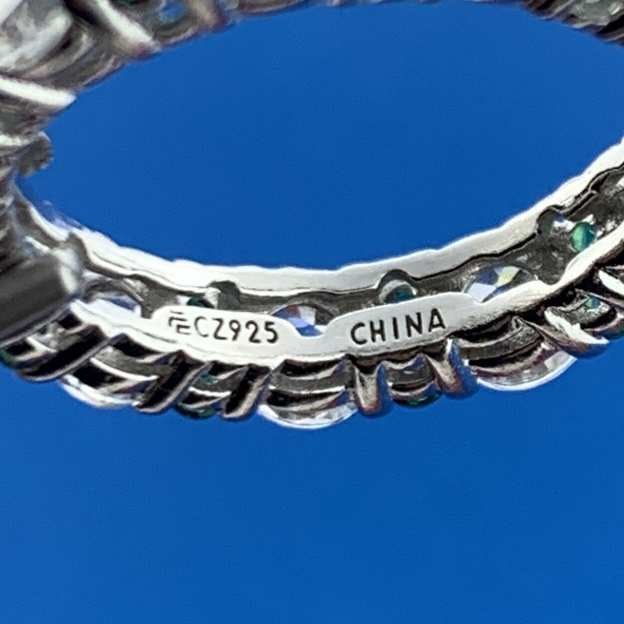 - Designer 925 Sterling Silver Emerald White Cubic Zirconia CZ Eternity Band Ring