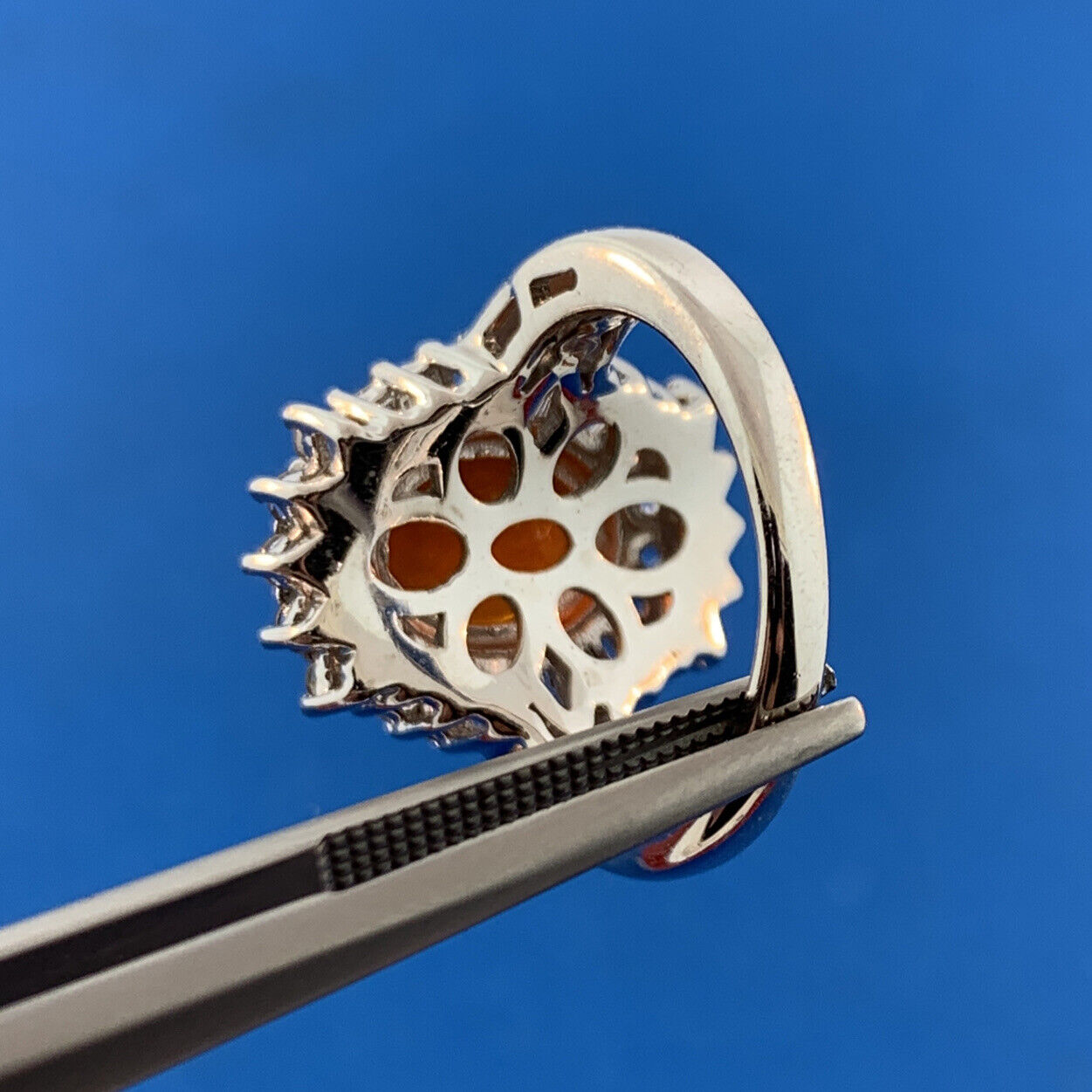 Designer 925 Sterling Silver Fire Opal White Topaz Halo Accented Cocktail Ring