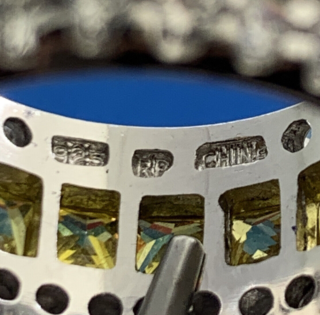 - Designer 925 Sterling Silver Lemon & White Cubic Zirconia CZ Statement Band Ring