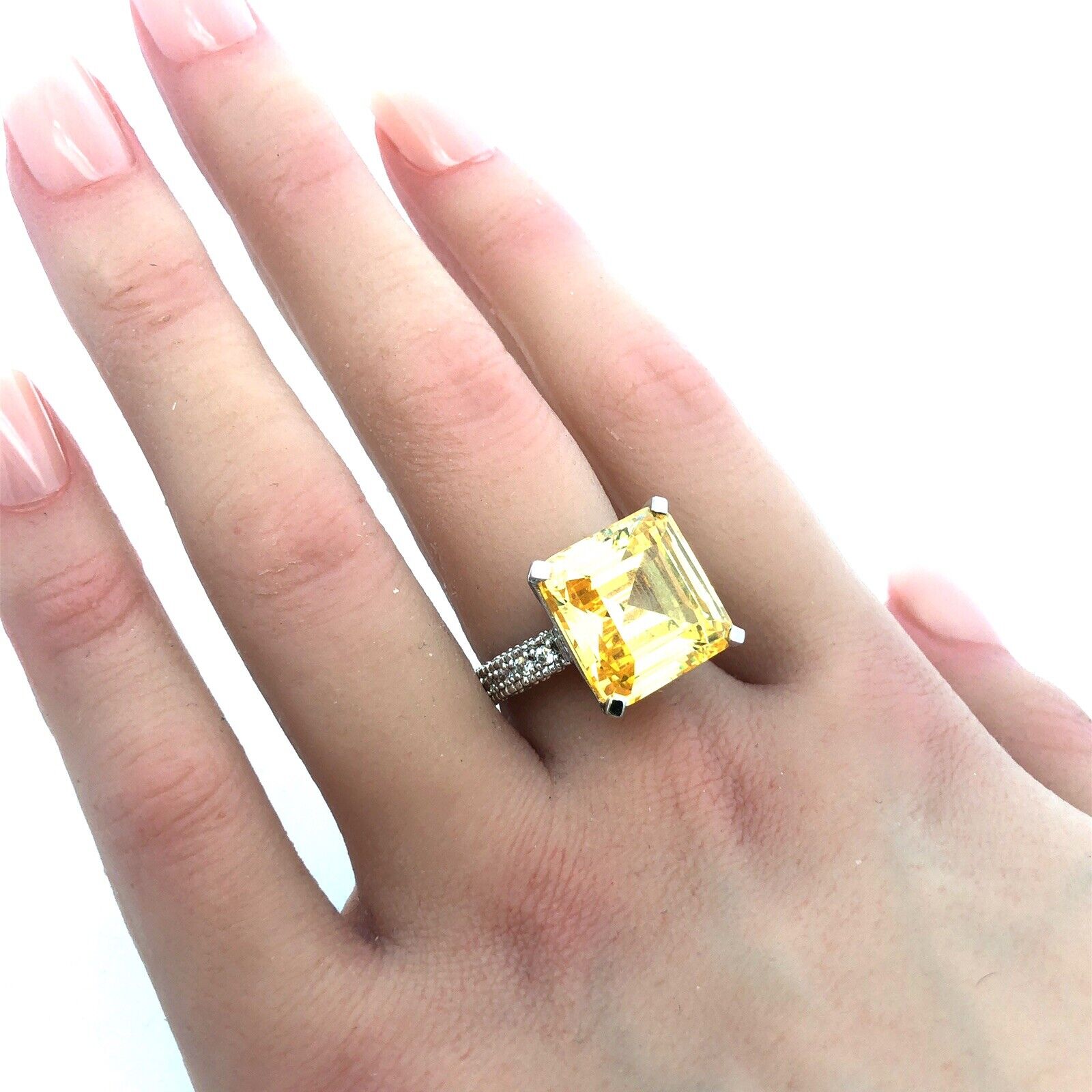 - Designer 925 Sterling Silver Lemon White Cubic Zirconia Statement Cocktail Ring