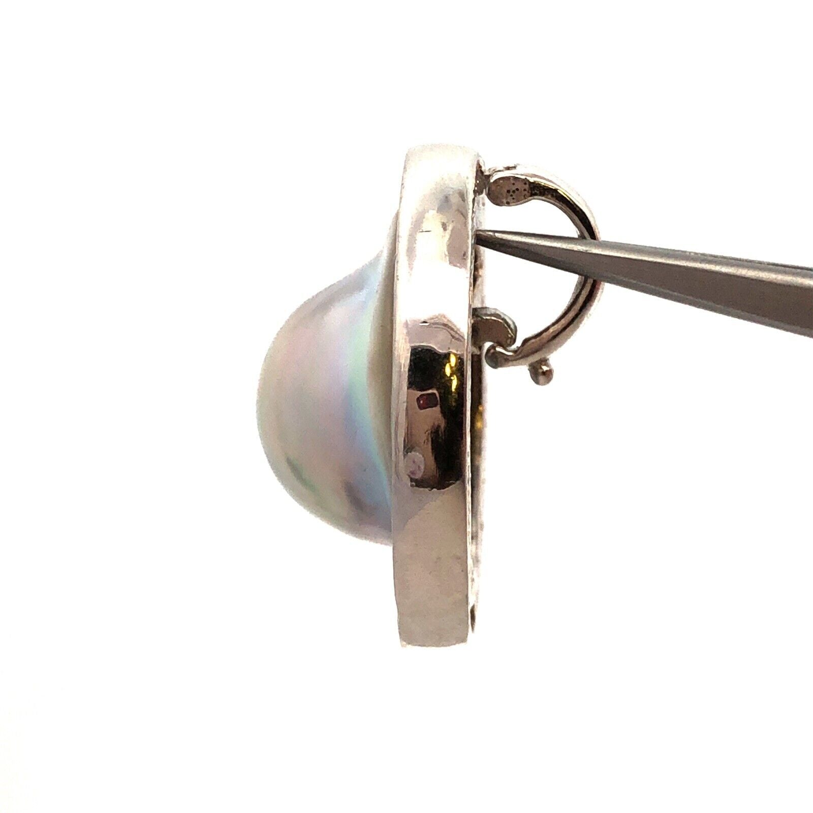 - Designer 925 Sterling Silver Mabe Pearl Round Blue Topaz Statement Pendant