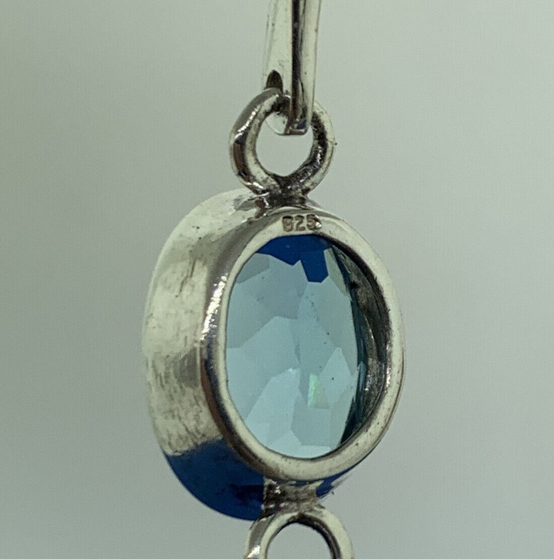 - Designer 925 Sterling Silver Oval Blue Topaz Solitaire Statement Cuff Bracelet