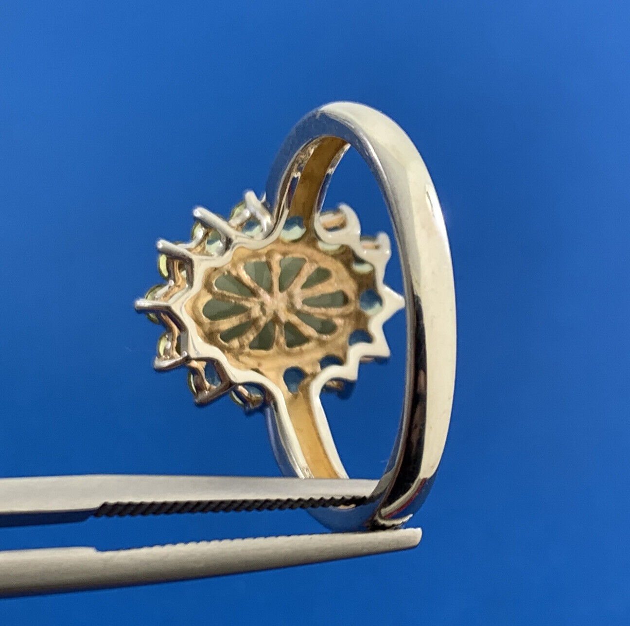 - Designer 925 Sterling Silver Oval Jade Cabochon Round Peridot Halo Cocktail Ring